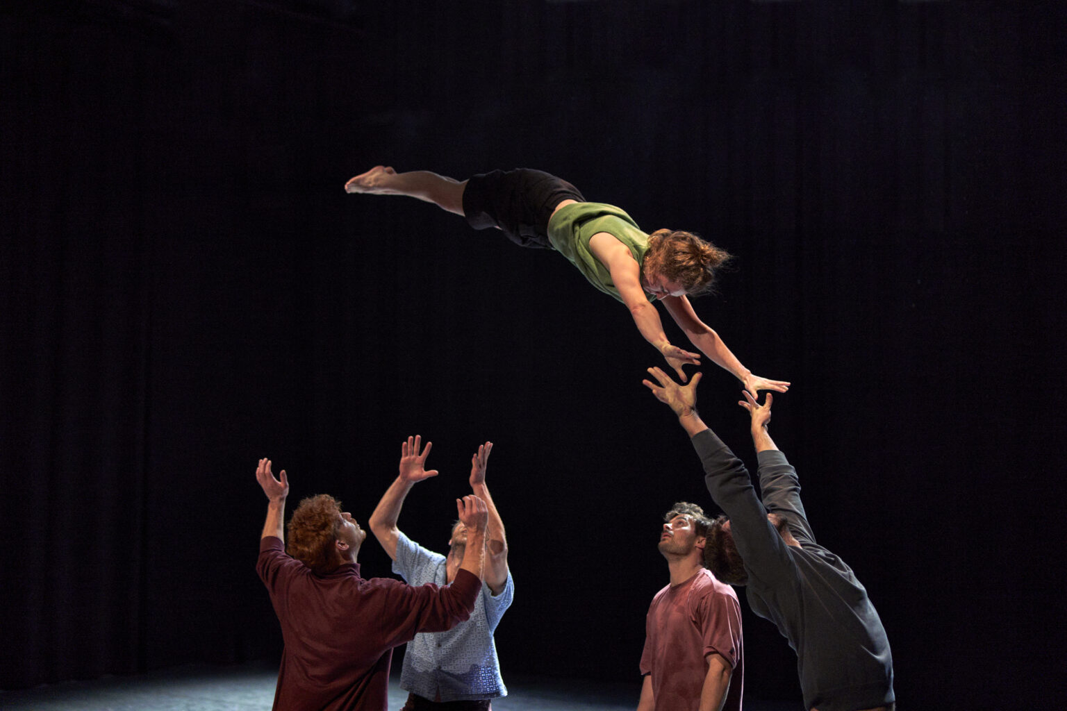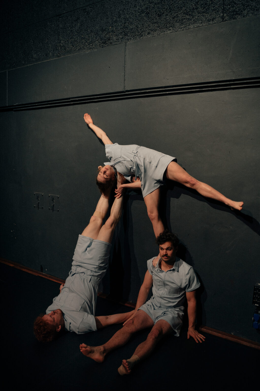 Vanuit het trio Knot on Hands sluit Mario Kunzi aan bij het gesprek. Samen met Britt Timmermans en Tijs Bastiaens rolde hij in 2019 de zaal in tijdens de afstudeervoorstelling van Codarts Circus Arts te Rotterdam. Uit de menselijke knot ontvouwde zich de basis voor hun latere voorstelling Brace for Impact. Daarna volgden Passing By: een avontuur door de stad, en Concrete.