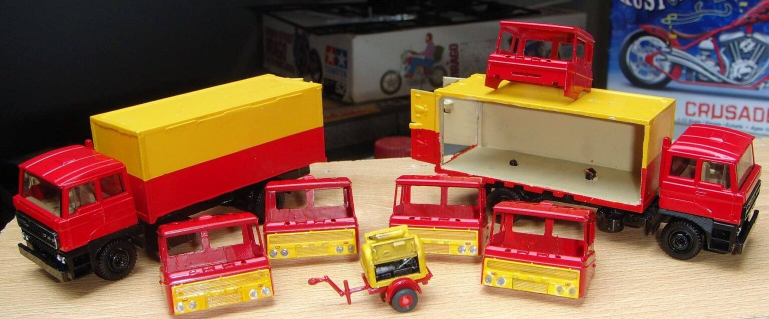 ‘De eerste stappen waren, om zoveel mogelijk informatie verzamelen over het circus Bassie & Adriaan. Dus foto’s etc. waren van cruciaal belang. De opzet was, om het circus zo precies mogelijk na te bouwen. Dus niet zomaar schaalmodellen kopen en stickers erop! Ze moesten echt kloppen met het originele model. Dit betekende voor sommige modellen veel bouwwerk. Zoals bijvoorbeeld de olifantentrailer, die eigenlijk bestaat uit 3 verschillende modellen verzaagd zijn…’