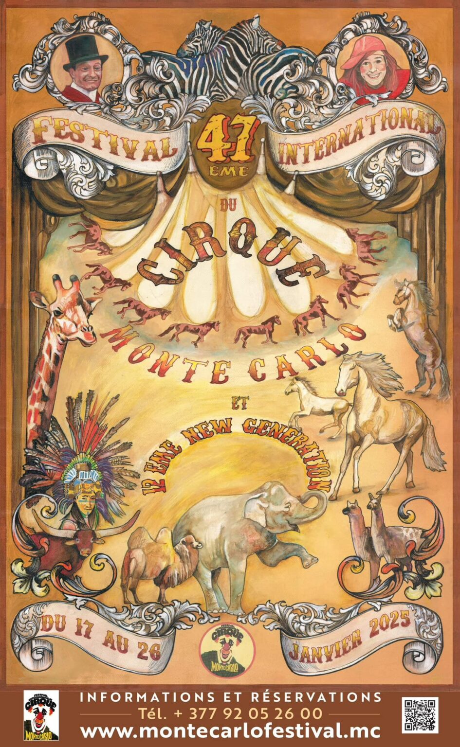 De poster van het 47ste ‘Internationale Circusfestival van Monte Carlo’ en het twaalfde ‘New Generation’ festival is gepubliceerd. Je vind hem onderaan dit bericht. Het festival – met als prijzen de befaamde bronzen, zilveren en gouden clown – speelt van 17 tot 26 januari 2025 in de beroemde circustent in Monte Carlo.