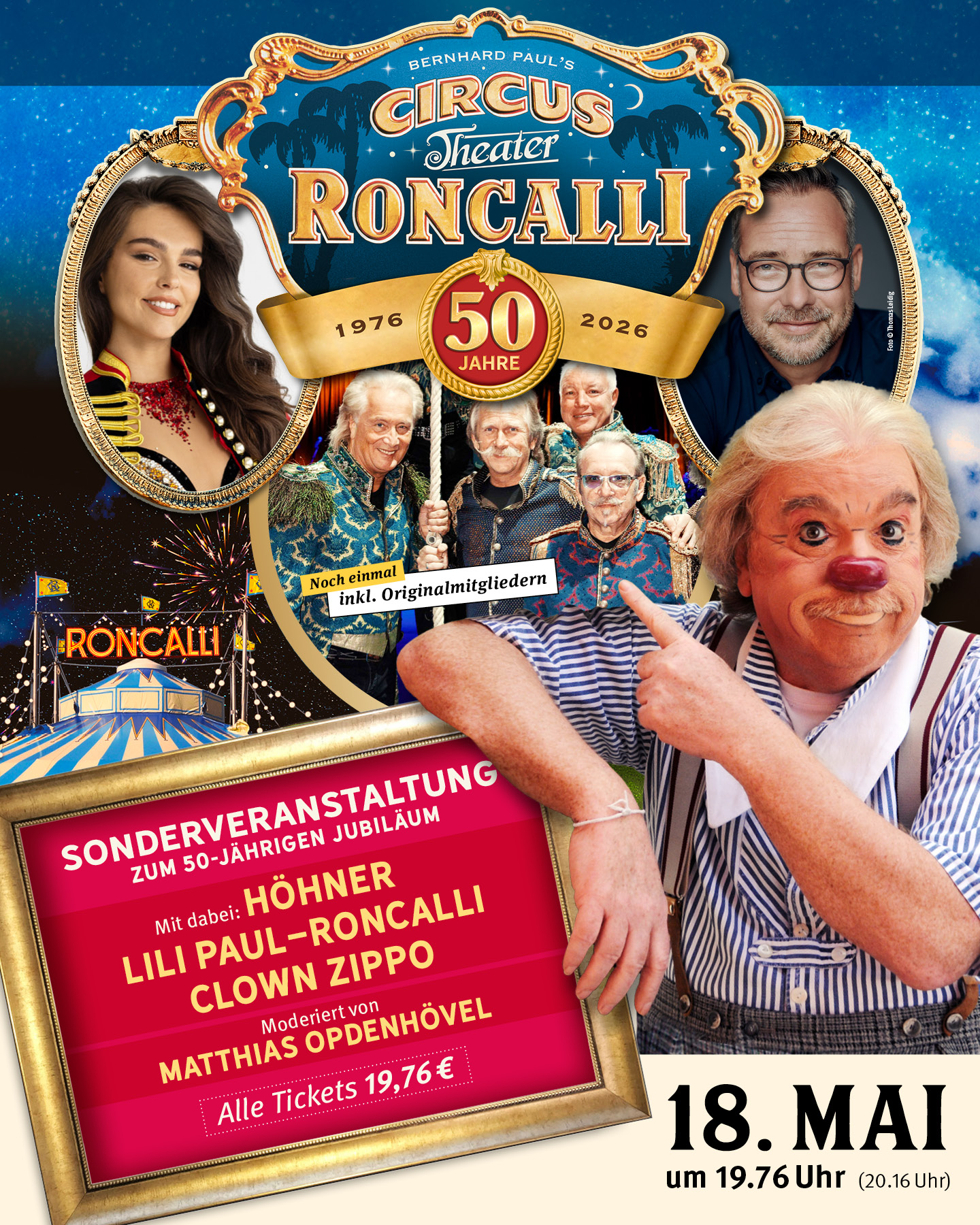 Voor het jubileumgala keert oprichter Bernhard Paul terug in zijn iconische rol als Zippo, een personage dat voor vele circusliefhebbers onlosmakelijk verbonden is met de magie en nostalgie van Roncalli.