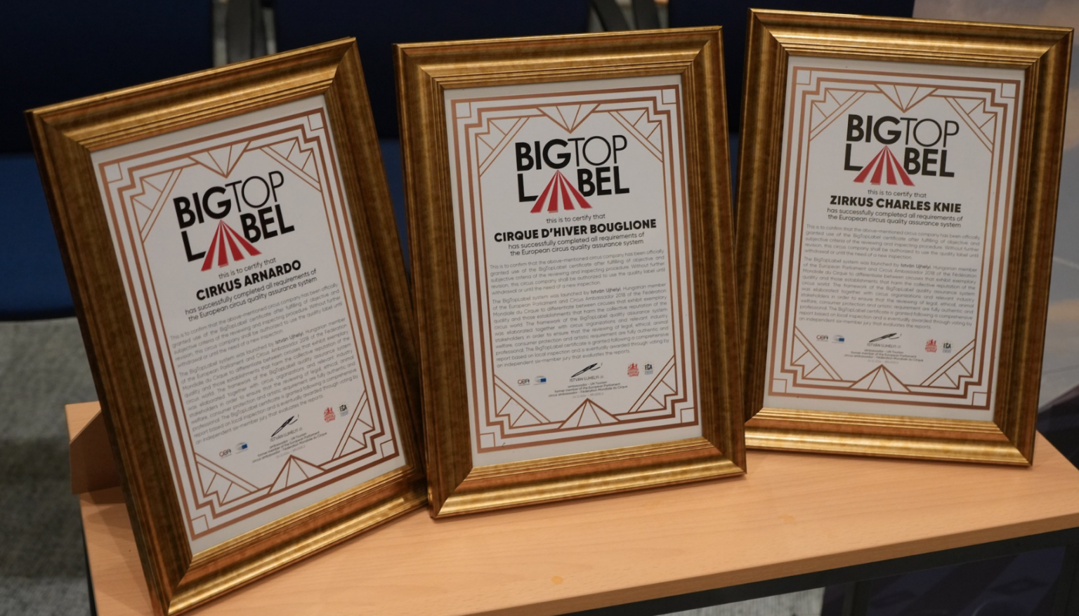 Op 4 december 2024 werden voor de vijfde keer de prestigieuze BigTopLabel-awards uitgereikt in het Europees Parlement in Brussel. Deze onderscheidingen, vaak aangeduid als de “Michelinster van de circuskunst”, erkennen circussen die voldoen aan strikte kwaliteitscriteria op het gebied van arbeidsnormen, service, artistieke waarde, milieu, sociale verantwoordelijkheid, transparantie en dierenwelzijn.