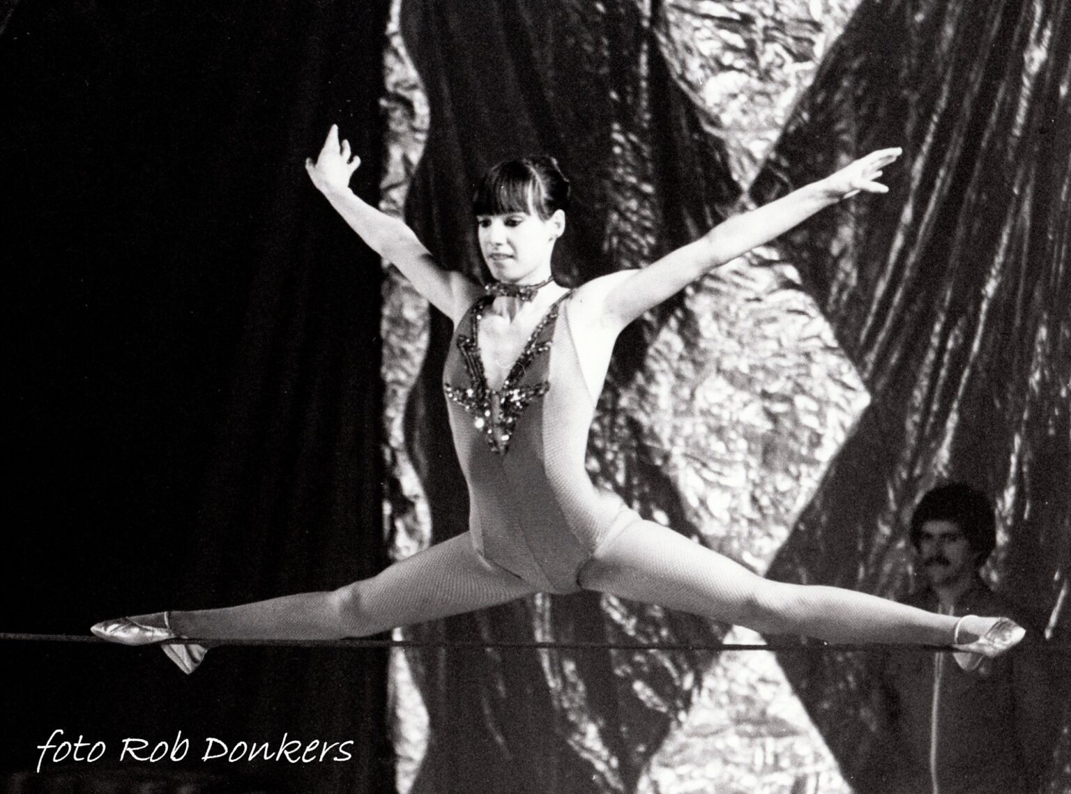 Toch kan ik het niet meer opbrengen nog groot fotospul mee te sjouwen of het moet al de “bazaar” van mijn vriendin zijn. Enfin, hierbij een paar van de zwart-wit plaatjes die ik in 1984 knipte van de Française Samoa Regazzoni. Een charmante en goede artieste, die een tijdje aan het programma meewerkte. Vooral haar strakke-draad act was erg goed, al mocht haar nummer aan het verticale koord ook gezien worden.