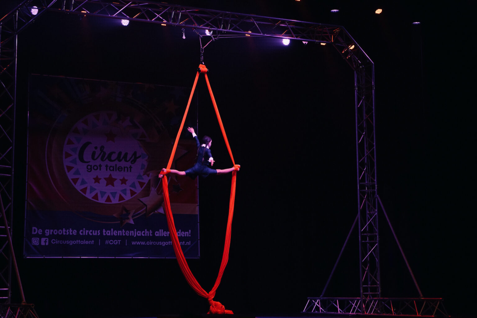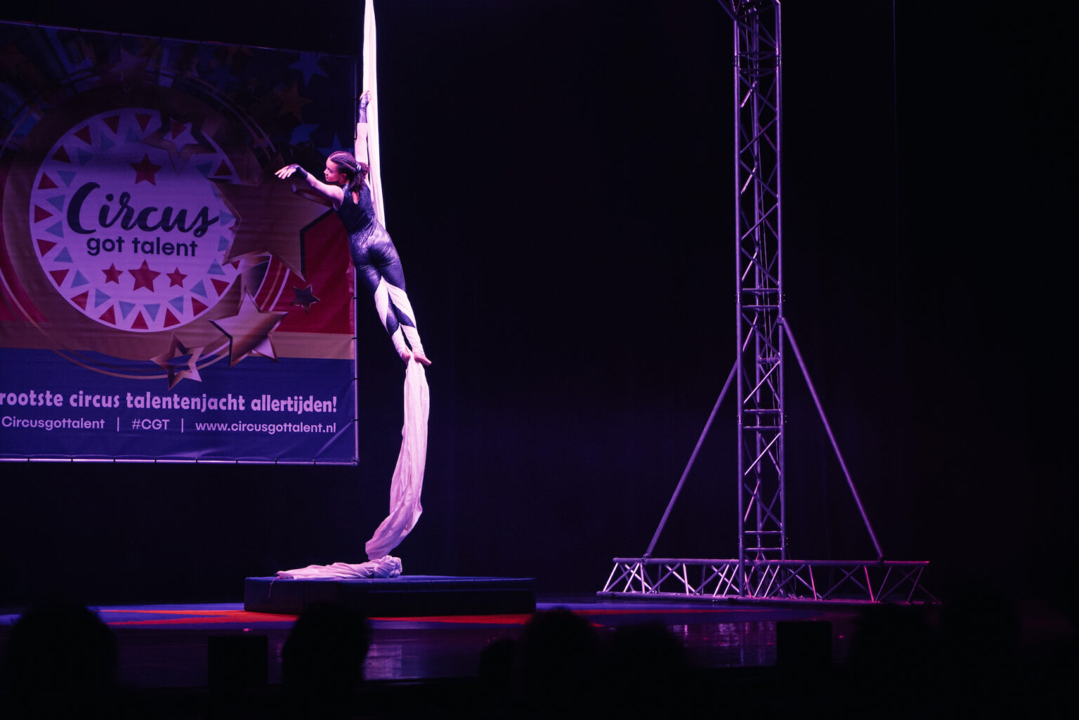 - Lilian Leek (Circus Miloco) toonde boven het theaterpodium een knappe act in de tissue.