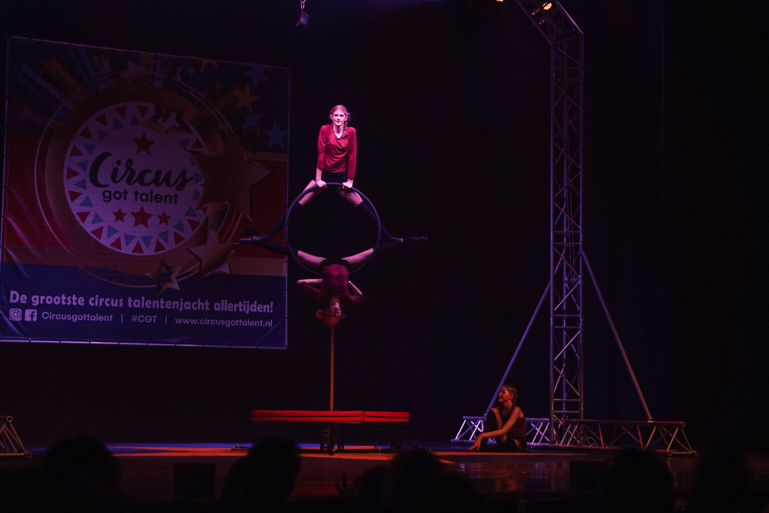 - Jessica Cadil – zeventien jaar – trakteerde het publiek op een waanzinnige act aan de luchthoepel. Stijlvol, technisch sterk en zeer professioneel uitgevoerd.