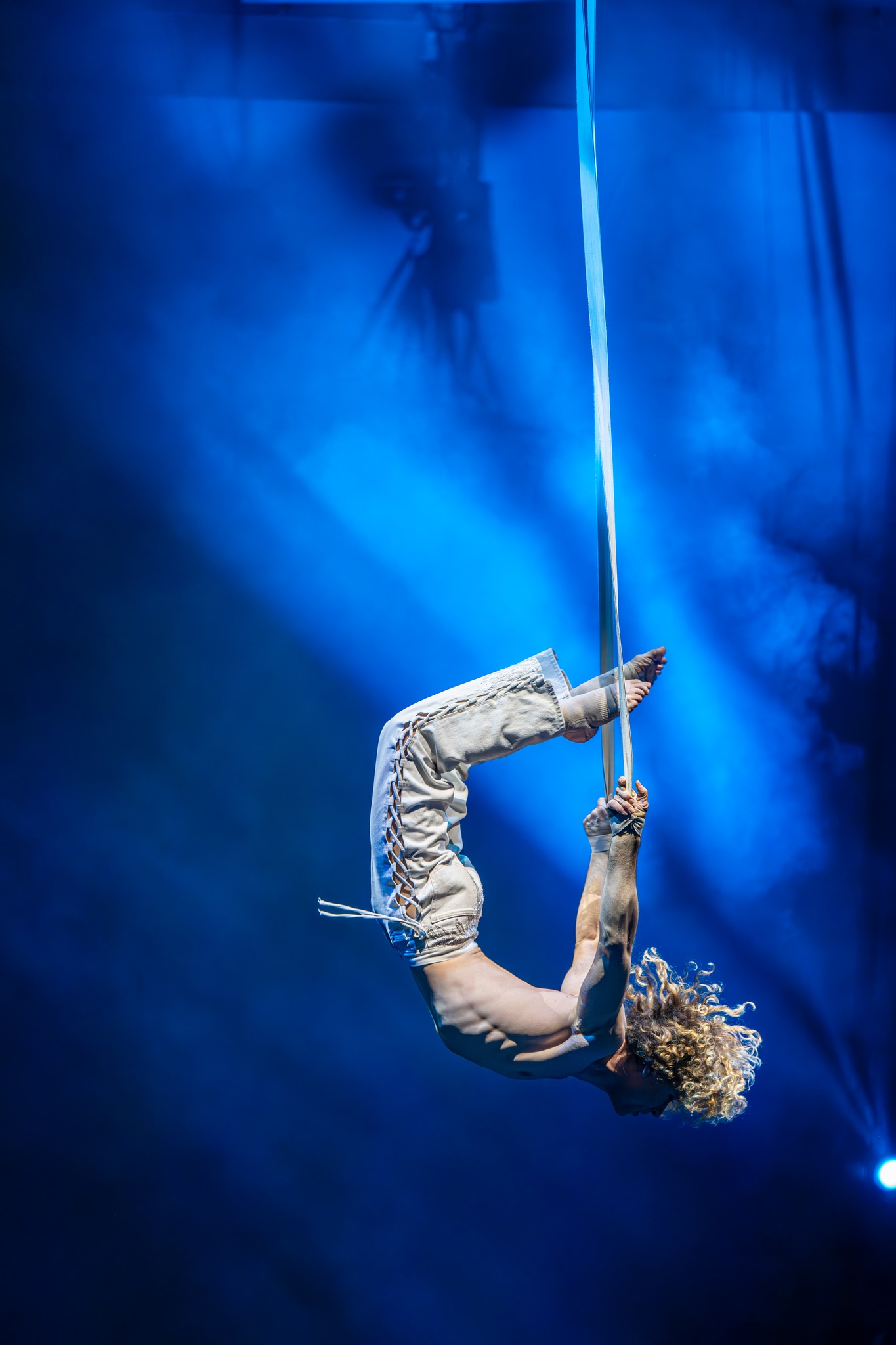 Een esthetische en jonge act waarin dans, acrobatiek en luchtwerk samenkomen. Aan de aerial straps zweeft Antony César als een engel door het chapiteau, in een choreografie die speciaal voor Circus Knie is gemaakt.