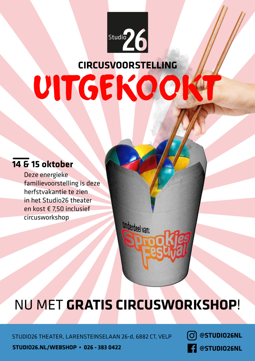 VELP – In de herfstvakantie vindt ieder jaar het Arnhemse Sprookjesfestival plaats en ook dit jaar is er tijdens dit festival een bijzondere voorstelling te zien in het Studio26 Theater in Velp; Circusvoorstelling Uitgekookt!
