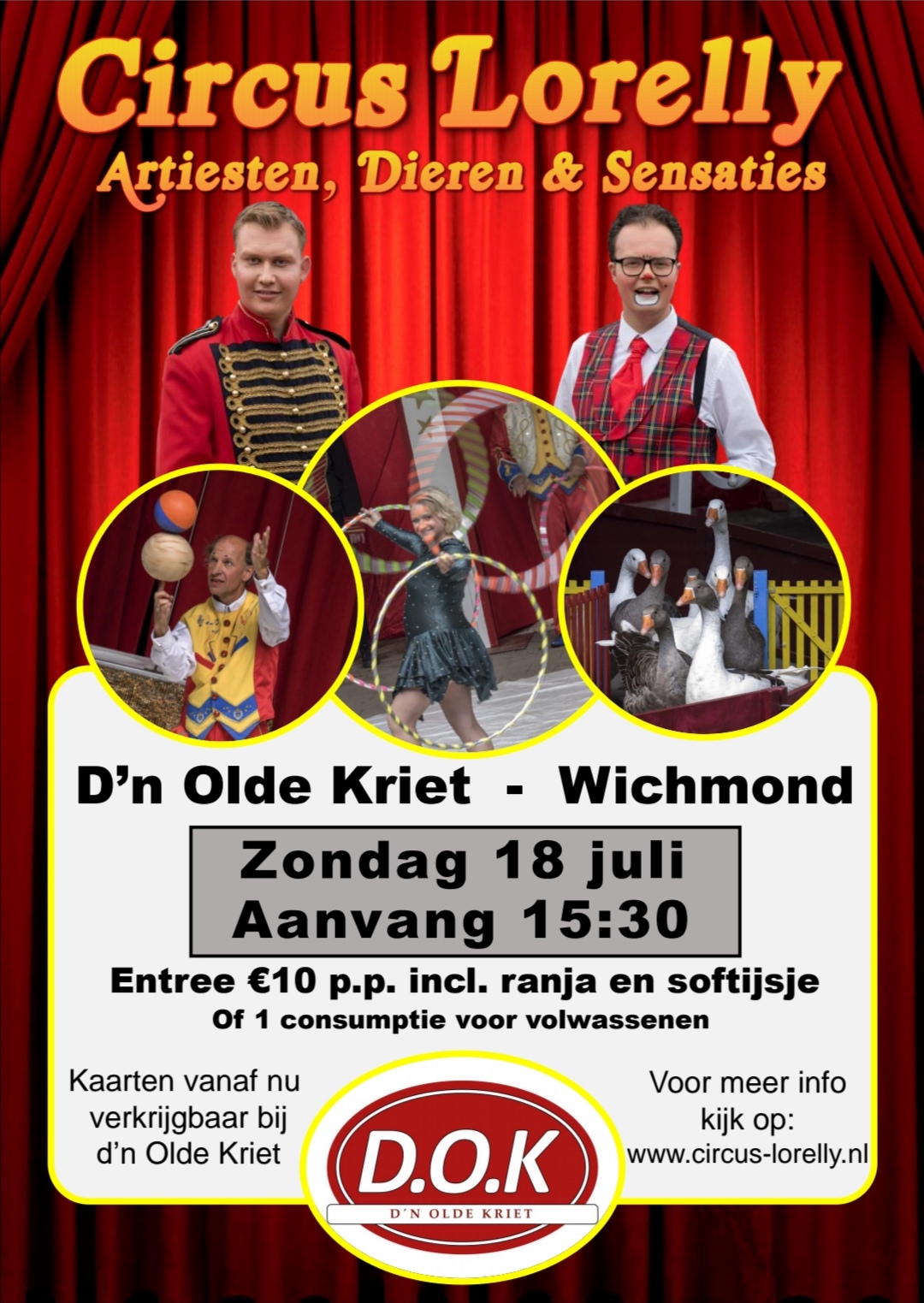 Entree bedraagt €10,00. U steunt daarmee de Stichting Circus Lorelly en de horecaondernemers van d’n Olde Kriet. Inbegrepen bij de toegangsprijs is een glaasje ranja en een softijsje voor de kinderen of 1 consumptie voor volwassenen. Wie er bij wil zijn kan tijdens openingstijden kaarten kopen bij d’n Olde Kriet aan de bar of bellen naar: 0575-441600. Wees er snel bij om teleurstellingen te voorkomen. Er kunnen een beperkt aantal toeschouwers worden toegelaten in verband met de afstandsregels die gelden.