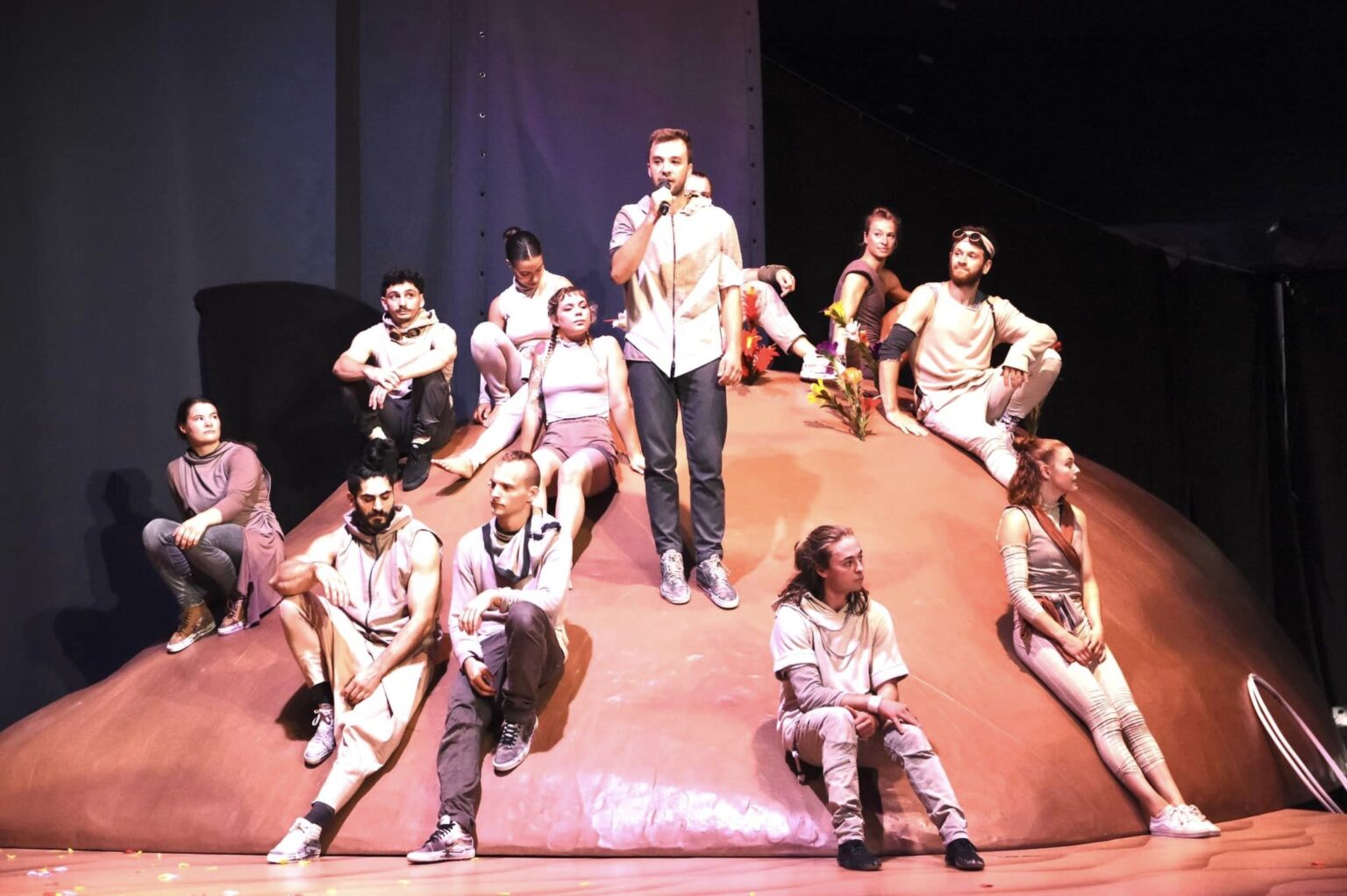 Een groep van jonge artiesten (14 in totaal) vormen het ensemble, de voorstelling is een verhaal met een boodschap, geschreven en geregisseerd door Masha Dimitri met assistentie van Faustino Blanchut. De verschillende disciplines van de artiesten zoals duo trapeze, Chinese ringen, diabolo’s, jongleren, verticaal touw enz worden in het verhaal geïntegreerd. Het verhaal lijn heeft abstracte vormen, maar wie de lijn niet helemaal kan volgen geniet evengoed van een spectaculaire voorstelling. De artiesten zijn in de zandduinen van de woestijn beland de glooiingen van het droge zand zijn herkenbaar in de piste. Een grote berg zand dient als artiesten ingang en heeft ook een coulisse functie. De toeschouwer wordt meegenomen op de route door de woestijn. Alles is tot in de puntjes op elkaar afgestemd van kostuums tot licht en een geweldige muzikale begeleiding van een live orkest bestaande uit zes muzikanten.