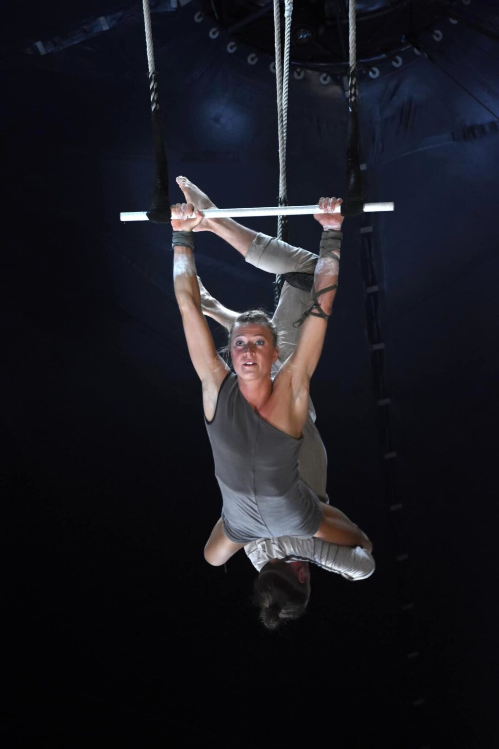 Het is zeer verrassend in welke vorm de jonge artiesten hun disciplines tonen, daarbij ondersteunen ze elkaar ook nog in hun aanwezigheid tijdens het optreden van hun collega’s. De diabolo vertoning van Felix Martin is al bijzonder wanneer zijn diabolo’s horizontaal en verticaal door de lucht gaan, verbaasd is niet alleen het publiek tijdens dit optreden, het complete ensemble staat er omheen en kijkt verwonderd of ze dit voor het eerst aanschouwen. Een lang koord in de nok wordt gebruikt om een diabolo op tophoogte te krijgen. Verrassend zijn het clowns duo Larissa Wagenhals en Adrien Borrut.