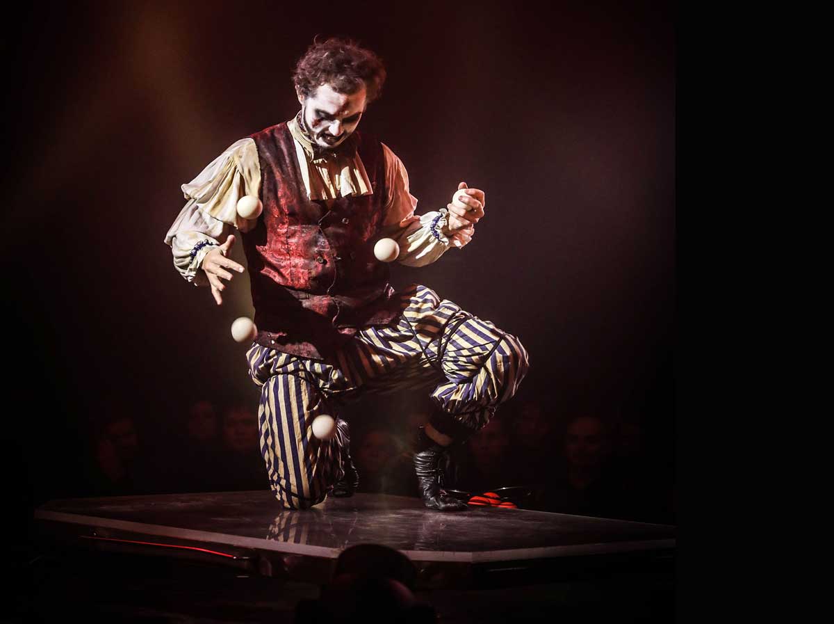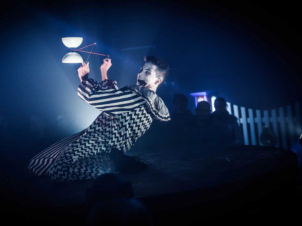 Als opening zit er een lugubere circusdirecteur aan een tafeltje op het podium en schrijft en vertelt het verhaal, waar het vanavond om draait. Prachtige maskers, kostuums die bij het thema horen en onheilspellende muziek en verlichting maken de show. De nummers spelen bijna allemaal achter op of boven het podium, terwijl er tussendoor “scarry actors” door het publiek lopen om er voor te zorgen dat de voorstelling vooral voor het publiek een kwelling is. Door de maskers krijg je een zelfde effect als bij Cirque du Soleil, dat de artiesten geen individuele sterren zijn met een naam en een eigen gezicht, maar een nieuw karakter hebben meegekregen als onderdeel van het grotere geheel. Het maakt het natuurlijk ook makkelijker om artiesten dubbelrollen te geven.