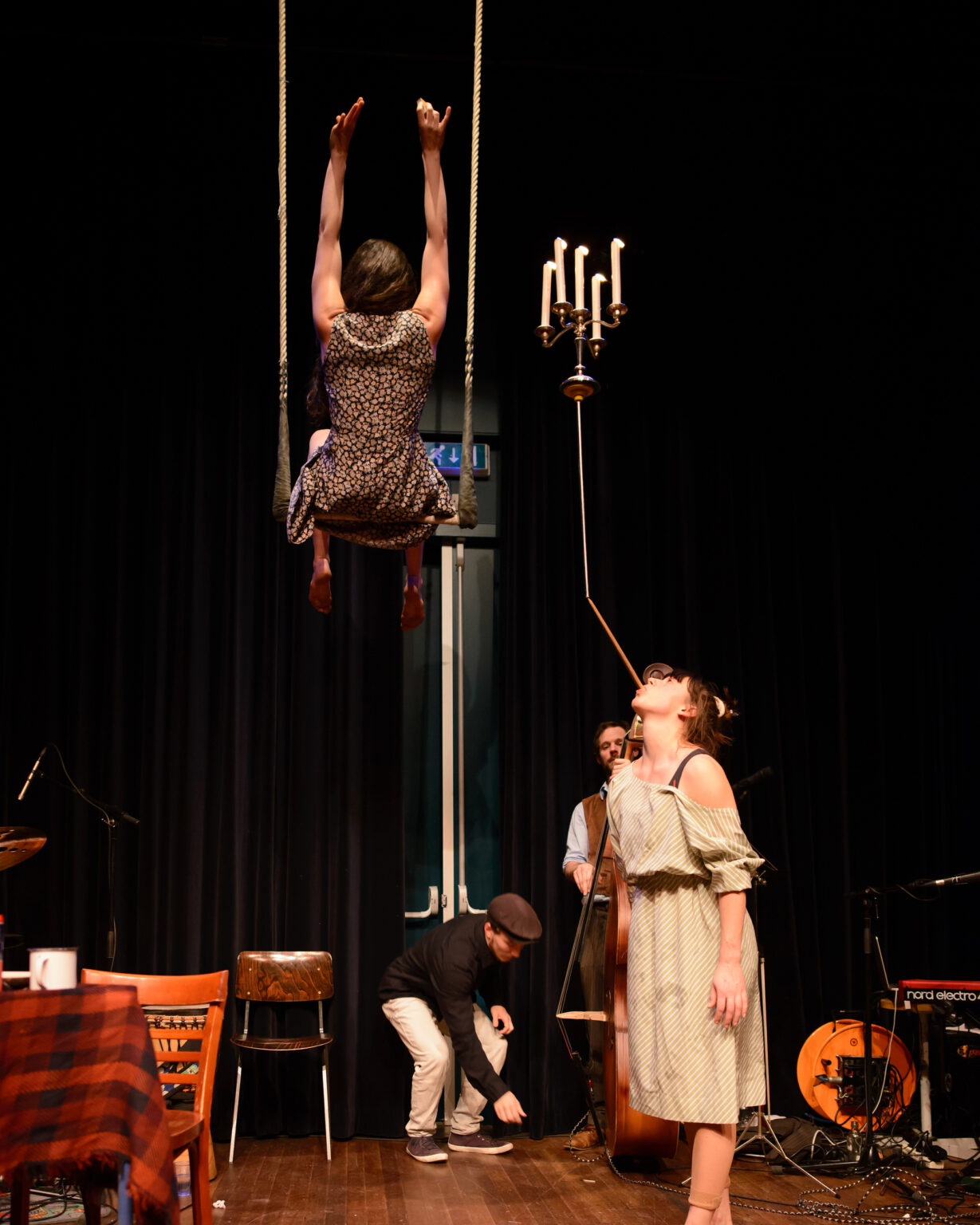 Panama Pictures smelt dans, circus en livemuziek samen tot een intrigerende belevenis en brengt een actueel verhaal van mensen op zoek naar nieuwe zekerheden. Tegen een imposant decor en ondergedompeld in de klankwereld vloeien dans en acrobatiek in elkaar over.