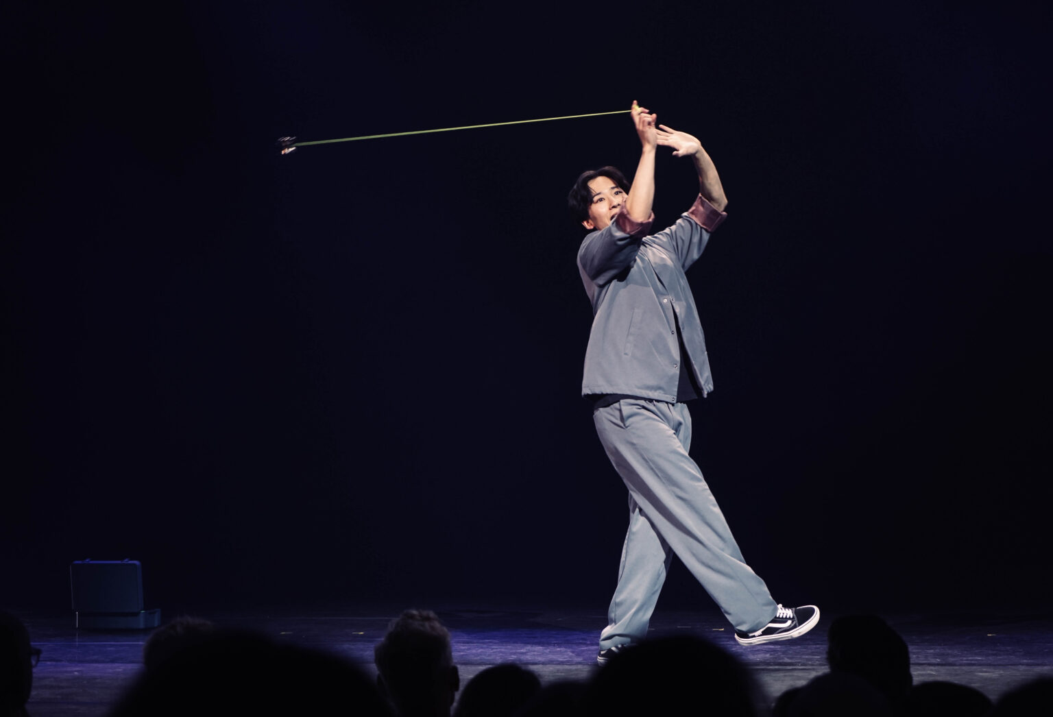 Dit programmaonderdeel waarin circushistorie diepgeworteld was, werd afgewisseld door een jonge generatie circusmakers. De jonge Japanse Shu Takada presenteerde een flitsende jojo-act. De act had een beetje kunnen verdrinken in het grote Nieuwe Luxor Theater. Maar Takada trok met zijn charisma elke bezoeker naar zich toe. Een act met kleine jojo’s vergrootte hij tot een grootse act. Het tempo en de frisheid van de jonge gast maakten je als toeschouwer intens blij.