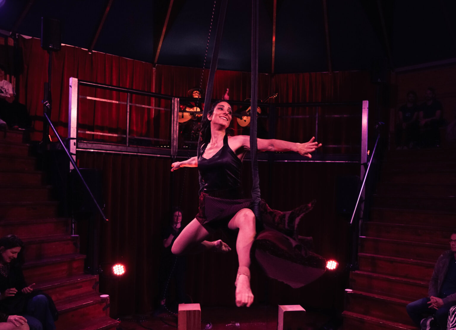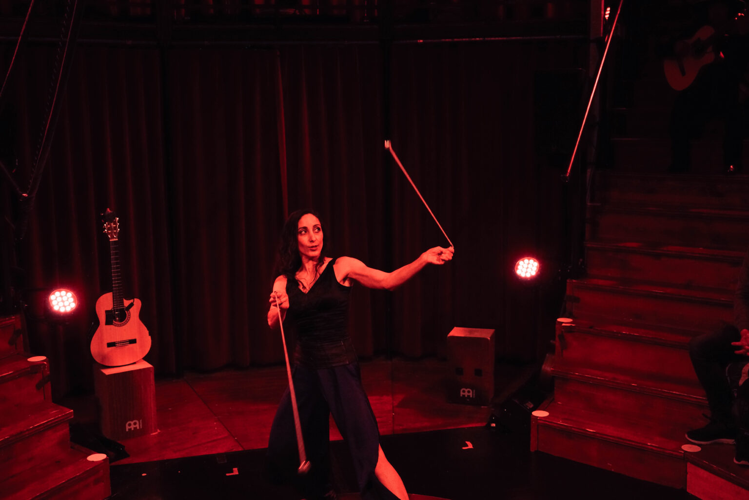 De toevoeging van Diane levert nóg meer temperamentvolle vibes. We zien haar aan de danstrapeze en tijdens het blok waarbij flamencodans en boleadoras elkaar ontmoeten. De boleadoras – een oorspronkelijk door Argentijnse ‘Gauchos’ gebruikt wapen – wordt ingezet als spectaculair percussie-instrument in dans.