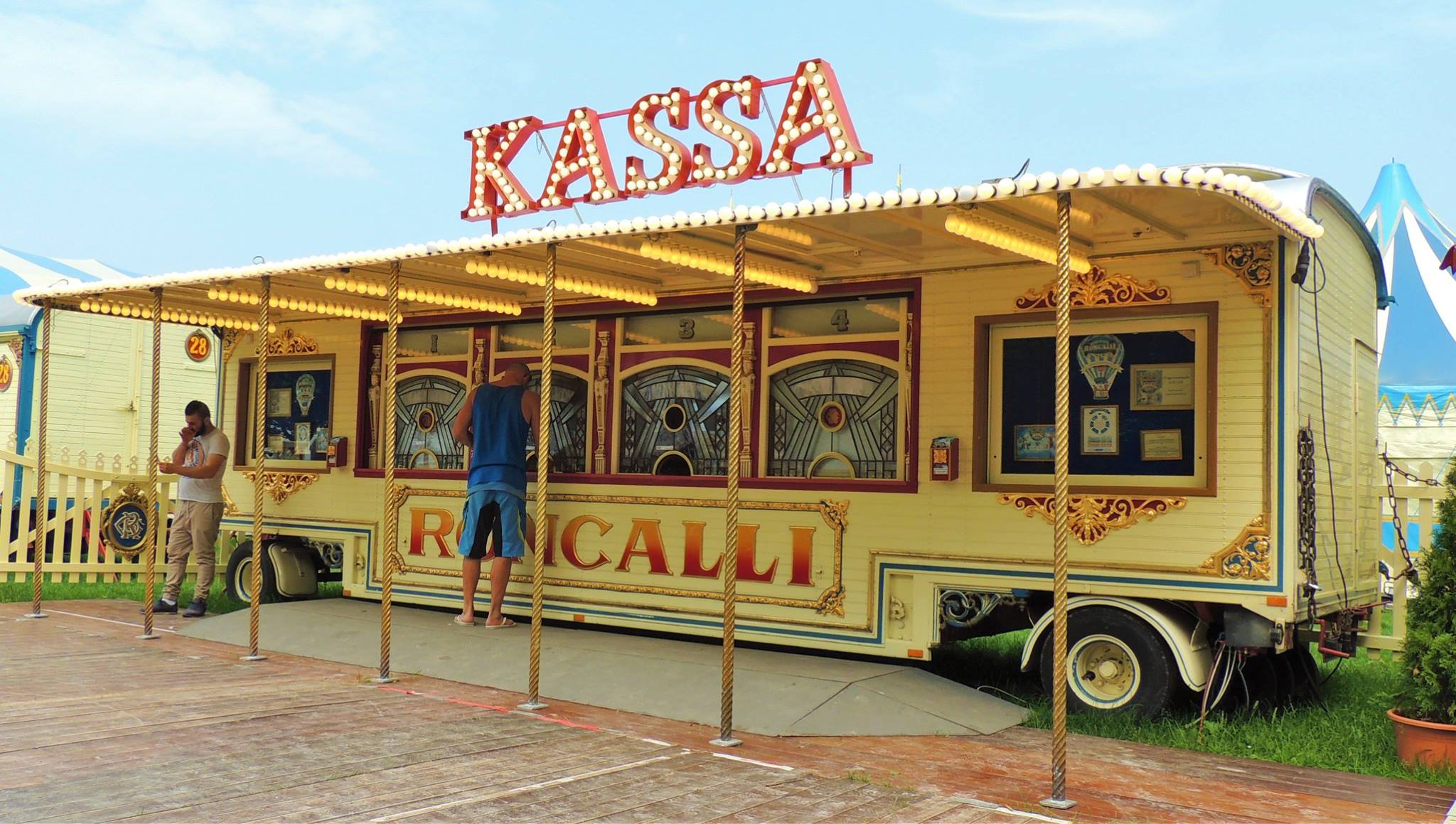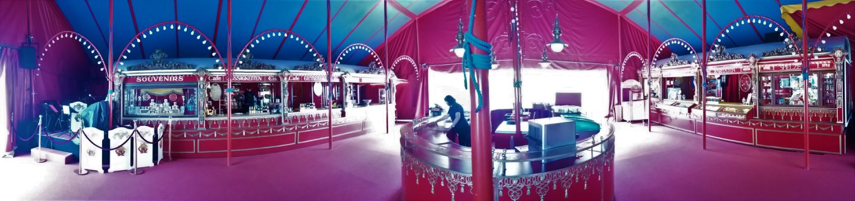 De kaarten liggen klaar bij één van de loketjes van de rijkelijk gedecoreerde circus kassawagen. We zijn vroeg genoeg en natuurlijk kan ik het niet laten om het circusterrein te verkennen…