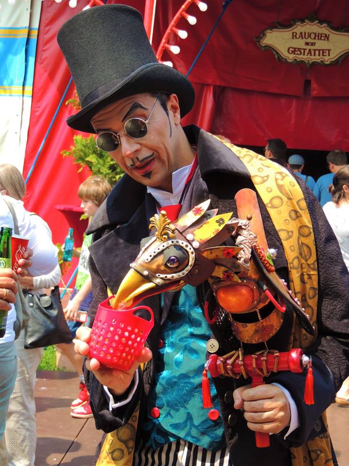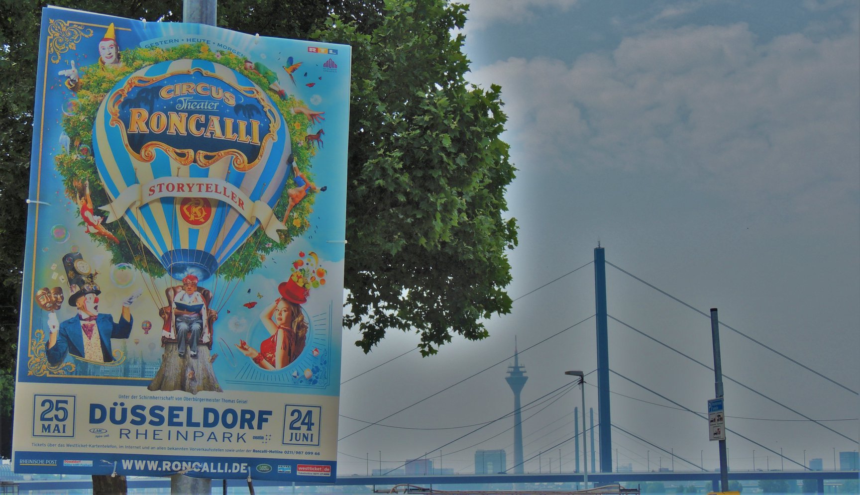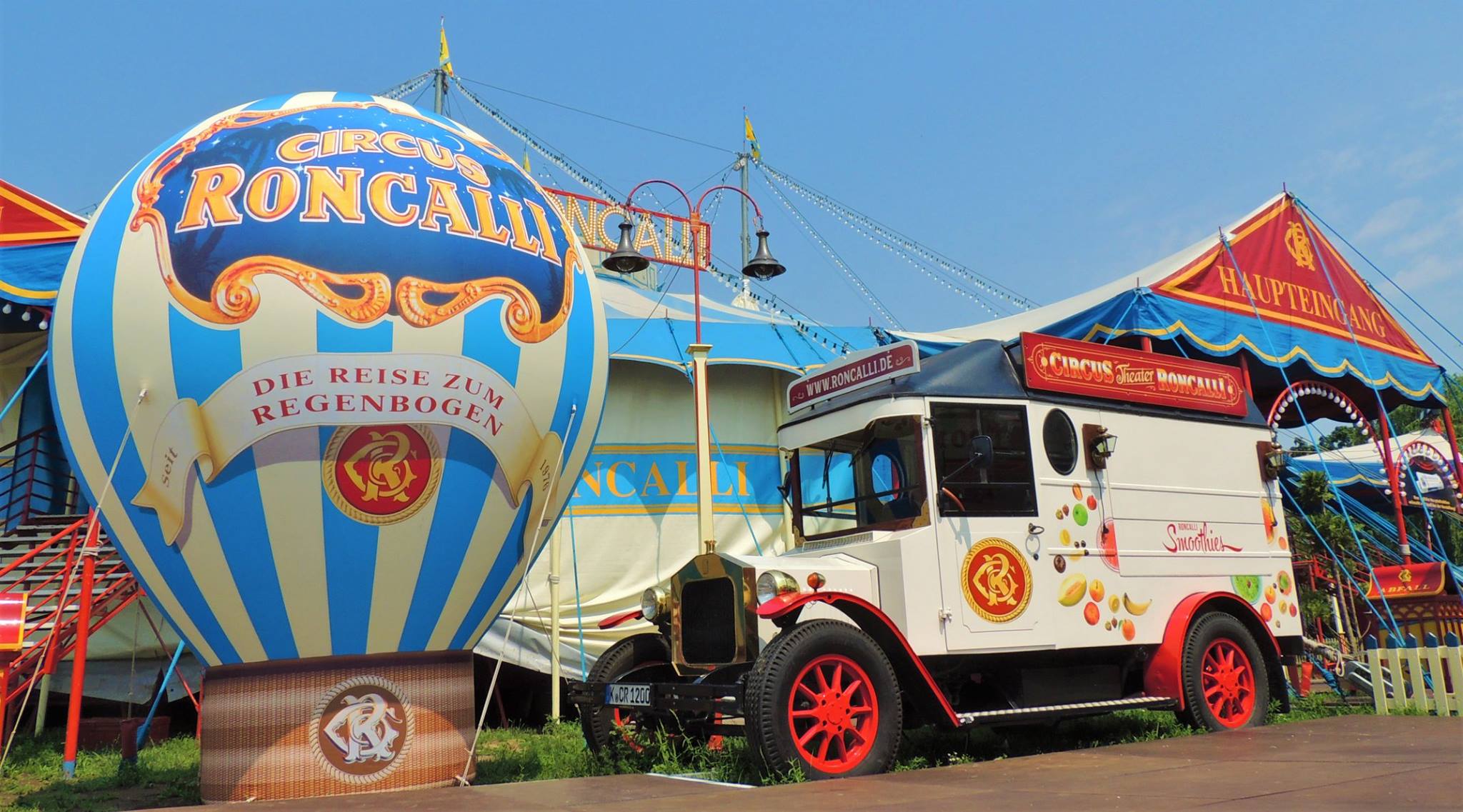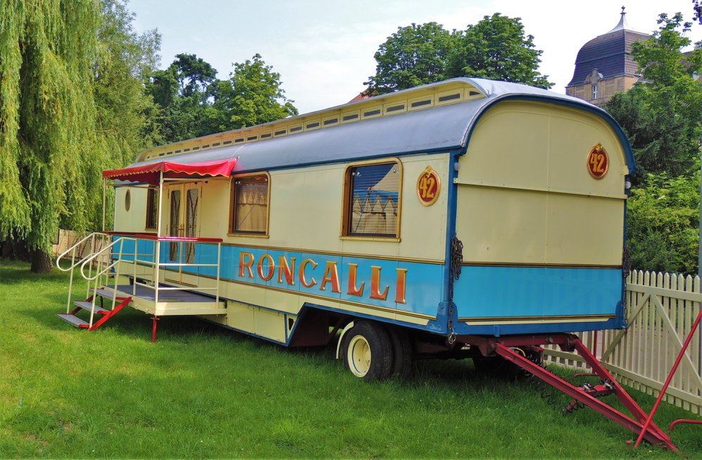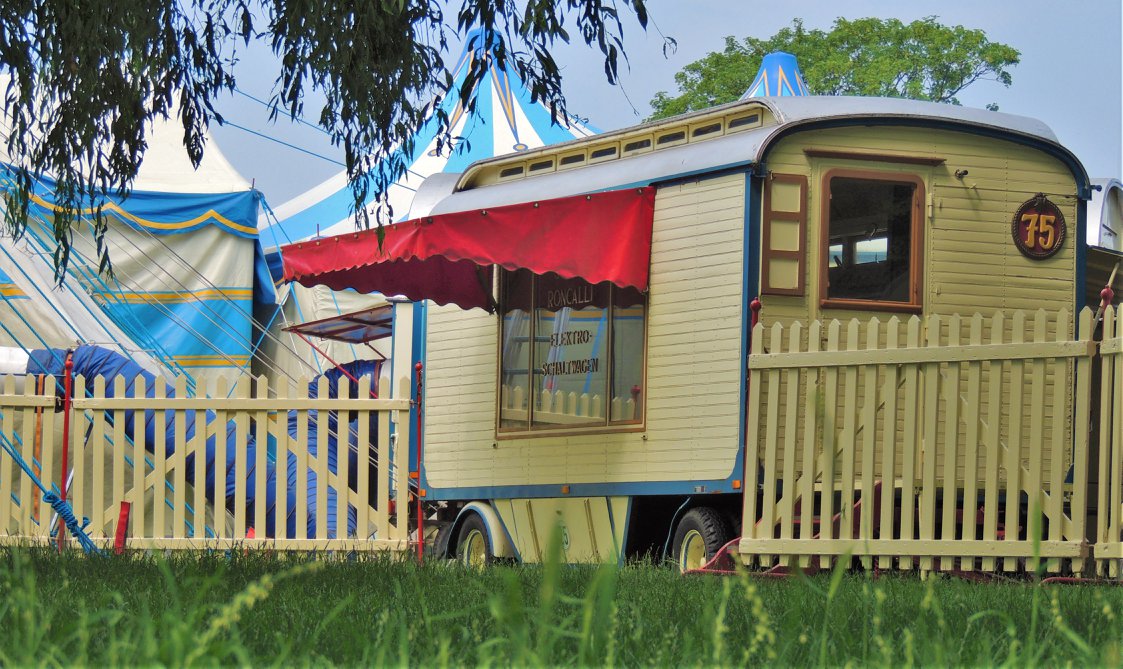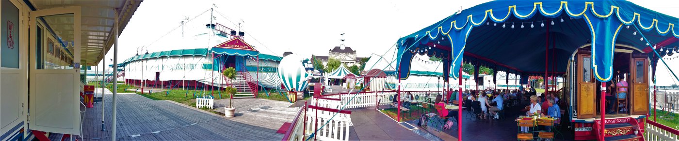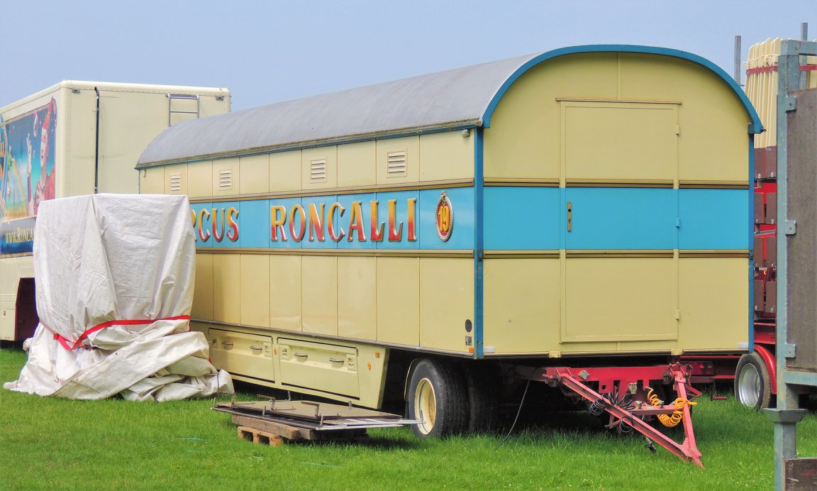 Düsseldorf, Duitsland – Onderweg doen de ballonvormige reclameborden vermoeden dat we in de buurt komen van het circus… Sierlijke circuswagens – van één van de laatste per trein reizende circussen in Europa – staat er aan de Robert-Lehr-Ufer in Düsseldorf: Bernhard Paul’s ‘Circus Theater Roncalli’ heeft van 25 mei t/m 24 juni de tenten opgeslagen.