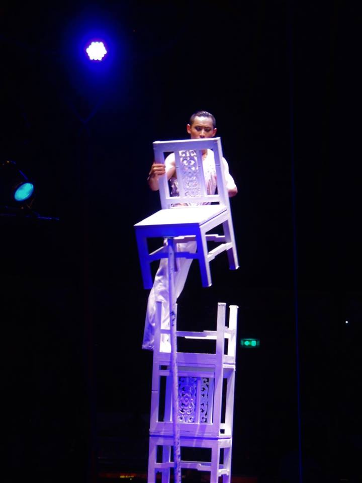 Een winnaar van de ‘Gouden Clown’ bij de 39e editie van het Circusfestival van Monte Carlo, Kong Haitao, stapelt zich met witte stoelen naar grote hoogte en weet daar het – in spanning toekijkende – publiek te vermaken met een handstand op één hand. De zweetdruppels vallen zichtbaar van zijn voorhoofd. Gelukkig is hij gezekerd, zodat zijn leven niet alleen aan een zijden draadje hangt, maar ook nog aan een stalen kabel. Ook voor hem een oorverdovend applaus. En dan wordt er met het publiek gewalst… een mooi ritueel bij Roncalli, al betekent dat meestal wel het einde van de voorstelling. Nog één keer komen ze op, al die artiesten die samen deze prachtige en meeslepende voorstelling maken. Dag in, dag uit, soms één, vaker twee keer per dag. Chistirrin en Gensi, sluiten samen het boek… Dit was dan de voorstelling ‘Storyteller’.