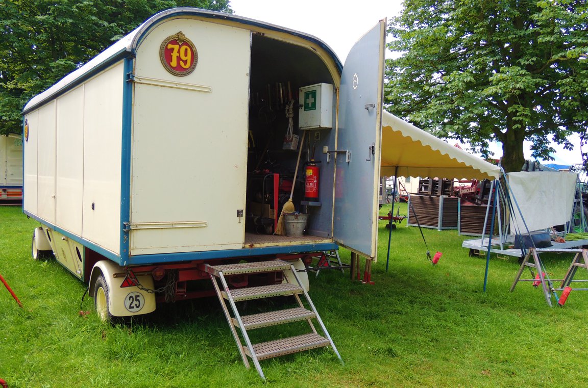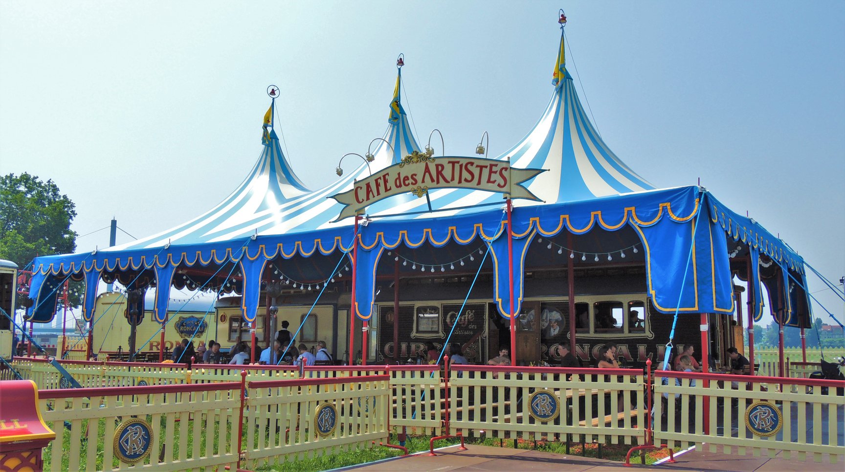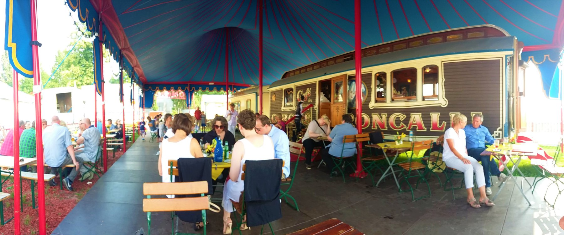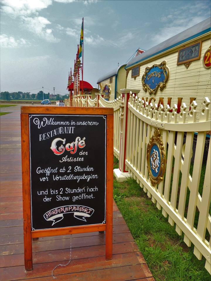 We besluiten wat te drinken bij het ‘Café des Artistes’, de karakteristieke bruine en nostalgisch ingerichte restauratiewagen. Drankjes, maar ook maaltijden zijn er verkrijgbaar. Circusdirecteur Bernhard Paul laat zich er niet zien.