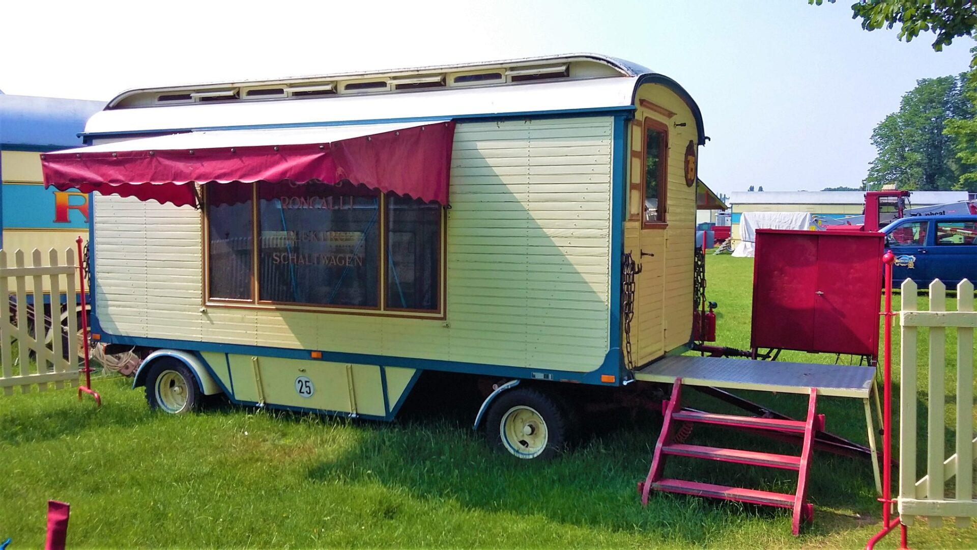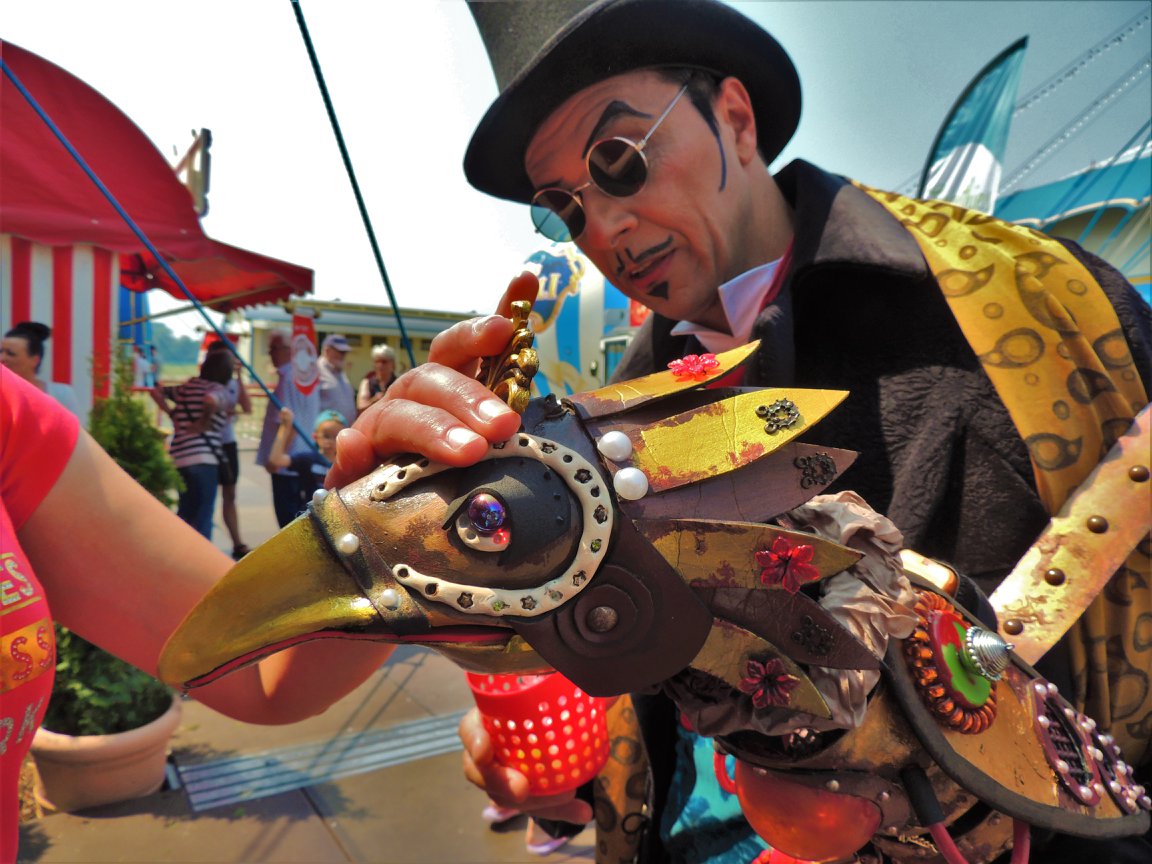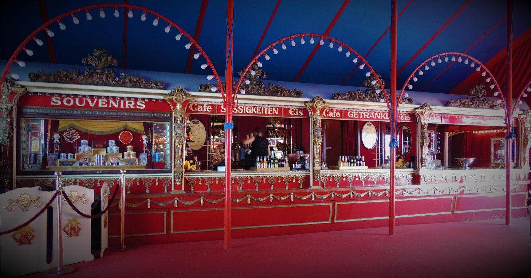 We besluiten wat te drinken bij het ‘Café des Artistes’, de karakteristieke bruine en nostalgisch ingerichte restauratiewagen. Drankjes, maar ook maaltijden zijn er verkrijgbaar. Circusdirecteur Bernhard Paul laat zich er niet zien.