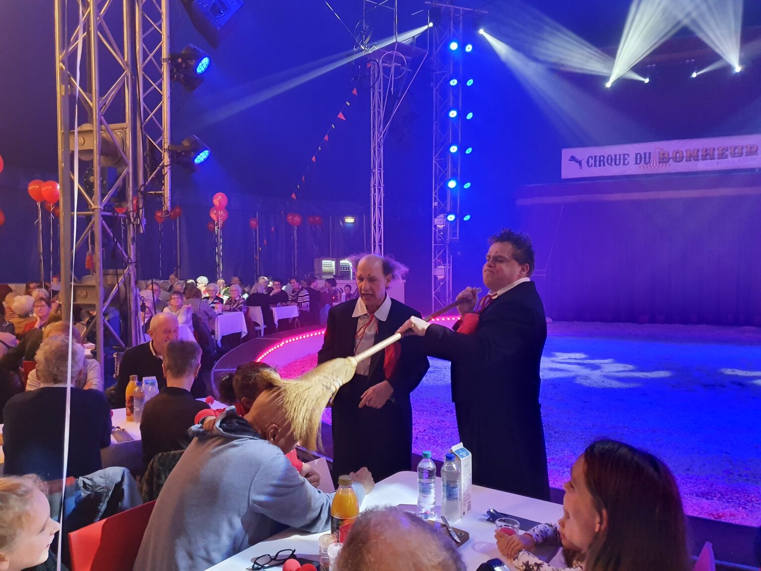 Pallasso Circus & Theater Clowns Erico en Marcel zorgden als gastartiesten voor de animatie bij binnenkomst en tussendoor bij de lunch en tijdens het diner traden meerdere artiesten op. Cirque du Bonheur wordt georganiseerd door het Winter Wondercircus van Kevin van Geet, Auberge du Bonheur en Albert Heijn XL Tilburg. Volgende week vind er ook nog een ontmoetingscircus plaats waar eenzame ouderen elkaar kunnen ontmoeten, dat evenement wordt mede georganiseerd door Monuta.