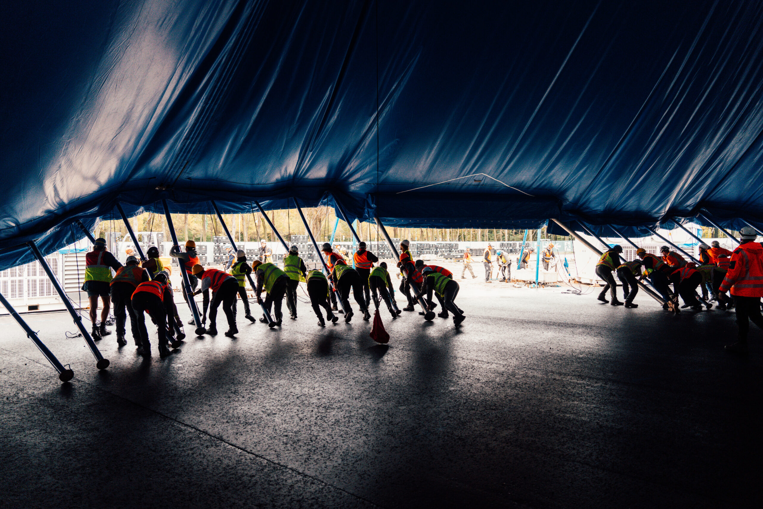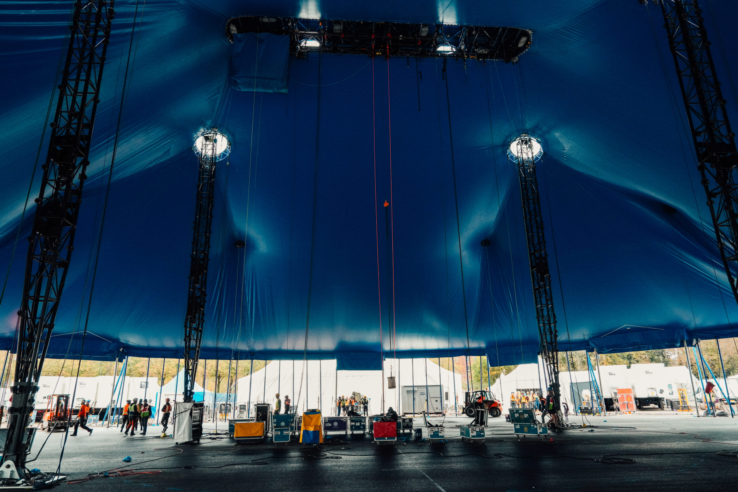De opbouw van een Cirque du Soleil-locatie lijkt bijna een voorstelling op zich. Wat is voor jou het meest indrukwekkende moment tijdens het bouwen van de Big Top – dat moment waarop je denkt: “ja, hier doen we het voor”?