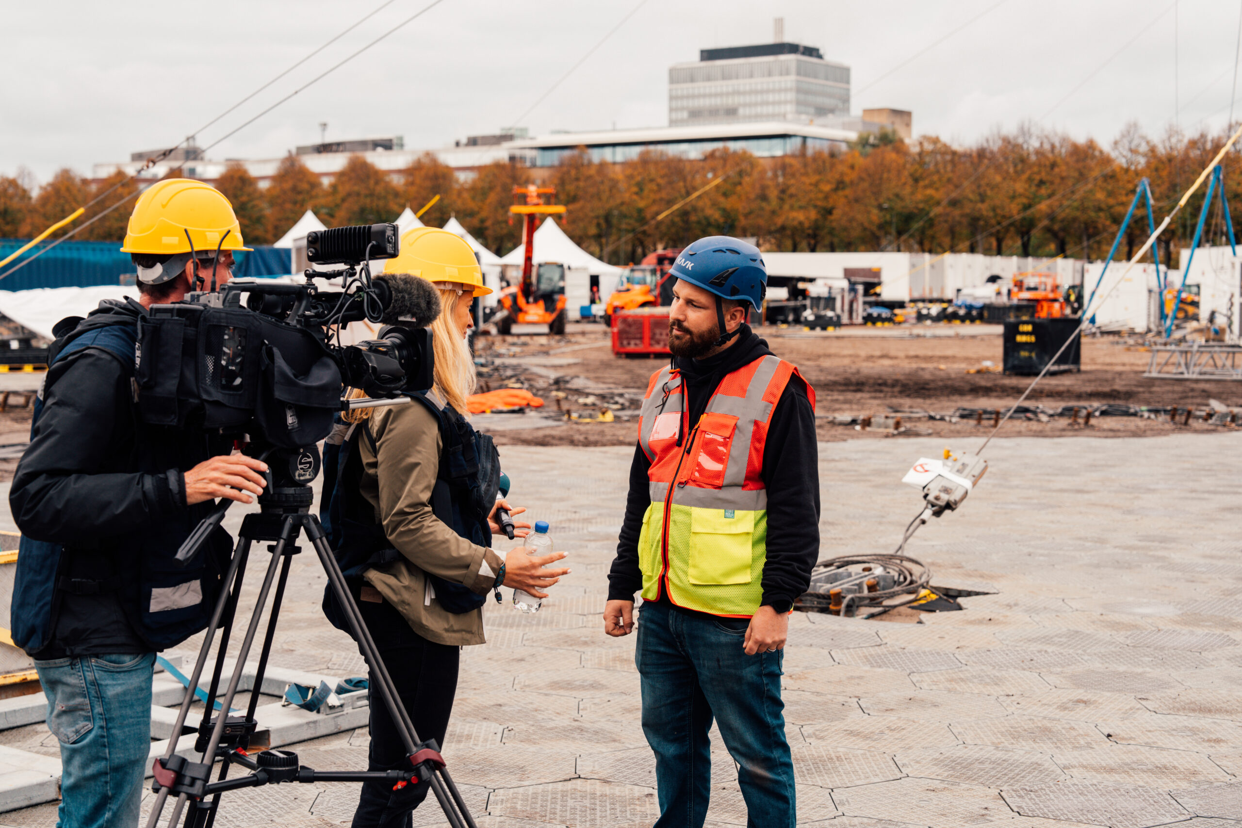 David in gesprek met de collega’s van Omroep West. (Foto door: Frens te Kiefte)