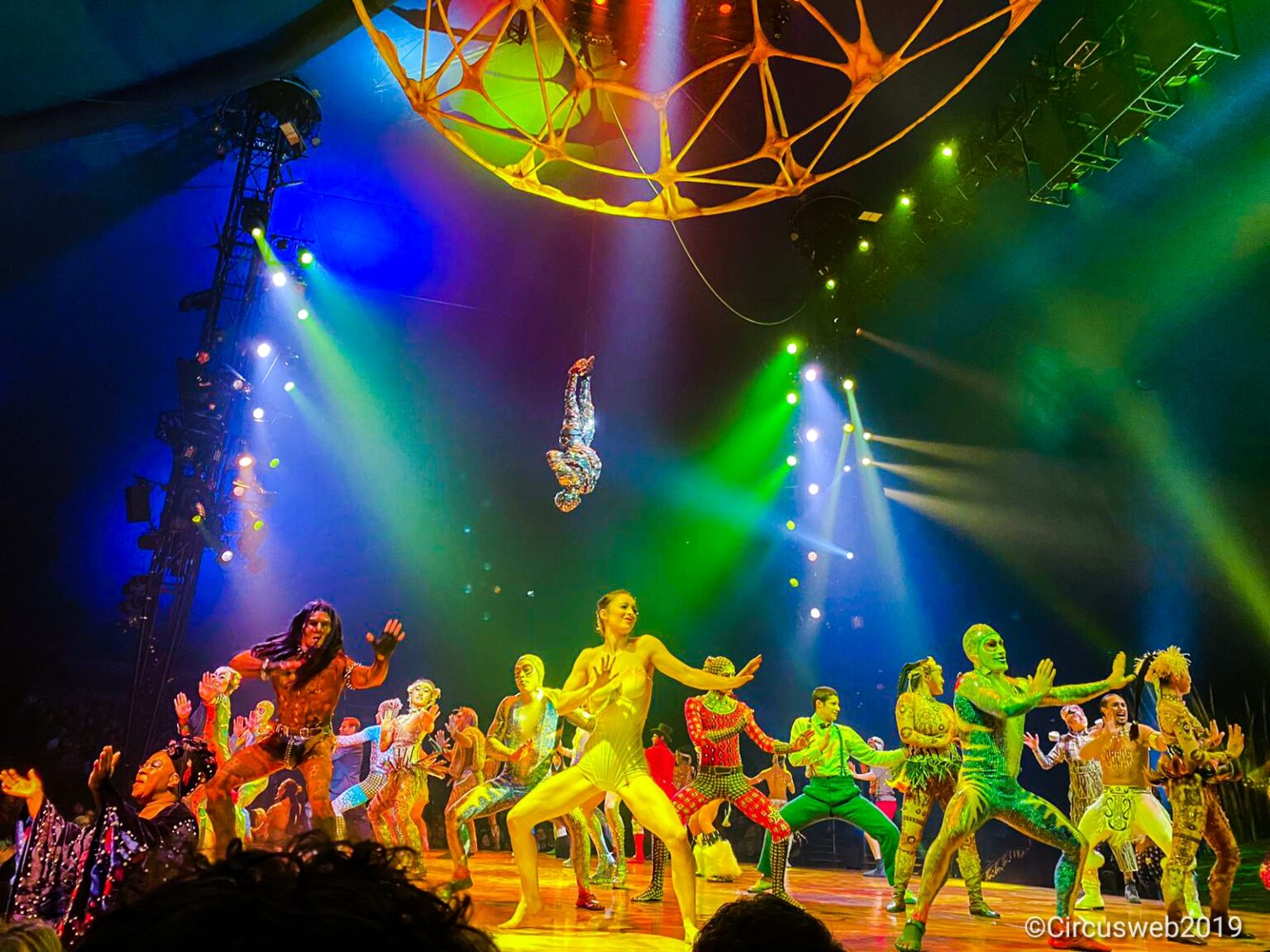 De “Circusacts” zijn verpakt in een strakke goed geregisseerde show, de opening met amfibieën aan rekstokken in de vorm van een schild van een schildpad maken direct veel indruk, de Chinese dames op hoge eenwielers, die kommetjes op hun hoofd en naar elkaar toegooien zijn wereld klasse. Persoonlijk vond ik de hoepeldans die overigens na de pauze nogmaals maar dan door twee personen wordt uitgevoerd wat minder, maar goed dat is het voordeel van circus er is zoveel te zien dat er al snel weer iets beters komt. De dubbele antipode is ook alweer van wereld klasse en er wordt overigens de hele show professioneel en gedisciplineerd gewerkt door het hele ensemble. De apen in de show worden geweldig uitgebeeld door geweldige acrobaten, met kostuums die nog mooier en beter zijn dan de kostuums uit de Lion King. Zij beelden samen de bekende afbeelding van mens tot aap uit en krijgen hiervoor een terecht applaus. De knappe en sterke acrobaat in de paal beheers een enorme techniek, evenals het trapeze duo na de pauze die een lichaamsbeheersing hebben tot in de perfectie, het gaat zo vanzelfsprekend, dat je zou vergeten hoe knap het is. Net als de jongleur die midden in een plexiglas trechter staat en een ontelbare hoeveelheid balletjes over de wand laat rollen om ze daarna weer op te vangen, je gaat bijna denken dat het geautomatiseerd is, wat dat betreft is te perfect misschien ook niet altijd even goed. Het rolschaatsnummer waarbij de artiesten met een kano opkomen en waarbij door een indiaan wordt gezongen is ook al zo mooi. Op dat moment realiseer ik me wel dat het publiek vandaag de dag door YouTube en huppeldepup gots talent enorm verwend is en moeilijker onder de indruk te krijgen is dan pak hem beet een jaar of tien geleden. Ook de artiest die gedurende de voorstelling in een zilver paillettenkostuum onderstboven een aantal keren op zijn kop naar benden komt zaken en zelfs rekwisieten mee naar de top van de tent meeneemt mag niet onvermeld blijven. Ik ben vast iets vergeten, maar je moet natuurlijk ook zelf gaan kijken. Voor de pauze duurde de show nog geen 50 minuten, na de 25 minuten pauze duurde het ongeveer nog 60 minuten. In de vrolijke opzwepende finale zie je hoe groot de cast is en dan hebben we het niet over technici, de medewerkers achter de schermen en al het personeel dat lokaal wordt ingehuurd. Het duurde even maar uiteindelijk kreeg de cast een staande ovatie. Persoonlijk heb ik een geweldige avond gehad en een perfecte show gezien, maar ik vind het toch te duur en te kort. Maar volgende keer ga ik weer en dat is de magie van Soleil!