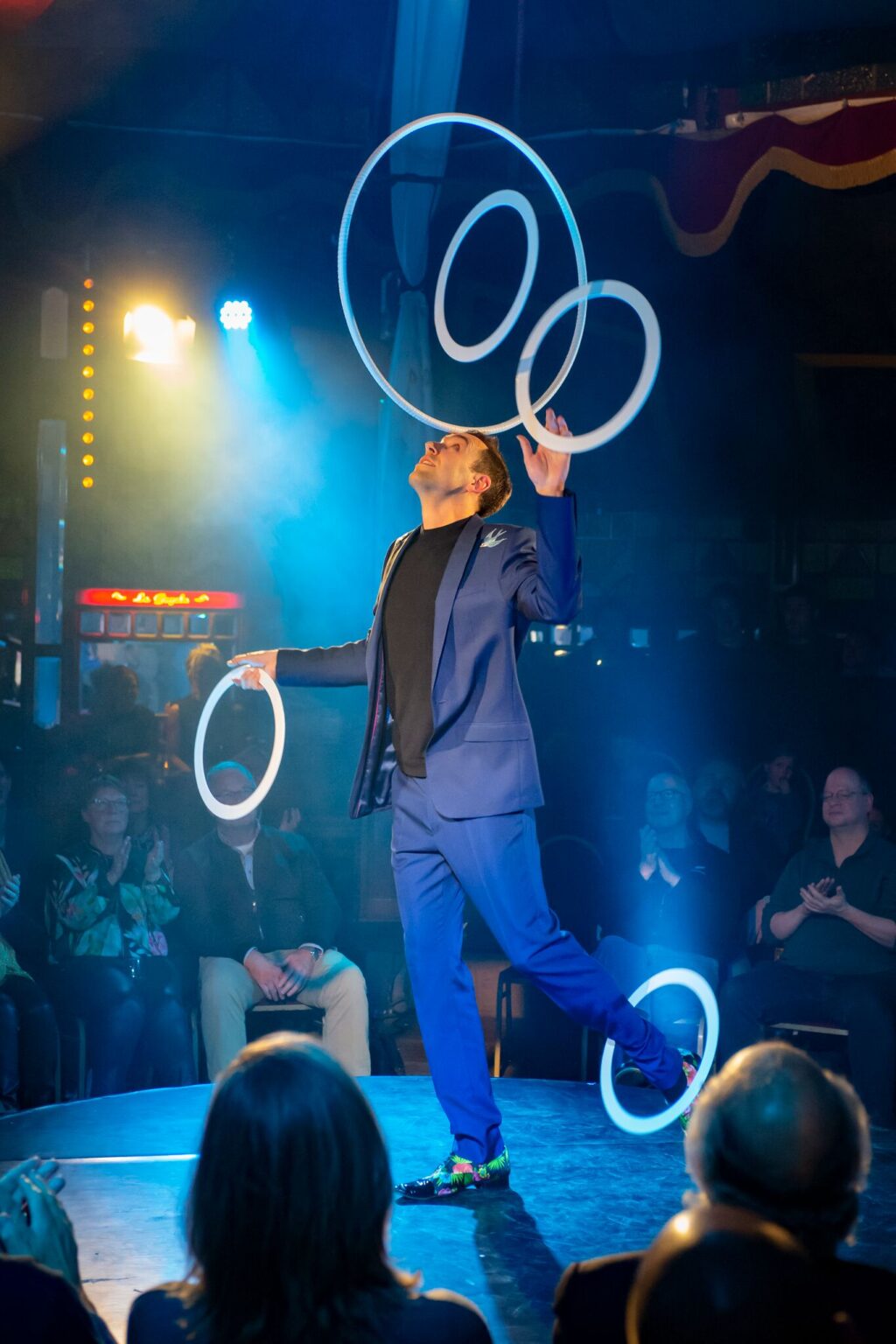David Severins en Dave van der Wal begonnen hun variété in 2017 in het Museumpark in Rotterdam. “ We wilden het variété heel graag weer terugbrengen naar de stad waar tot 1933 twee grote variététheaters stonden” aldus Dave van der Wal. “Omdat er geen beschikbare locatie was, zijn we zelf maar met een tent begonnen. Nu we in het Bibliotheektheater een partner hebben gevonden kunnen we ons geluk niet op. Dit is echt een droom die uitkomt. Het variététheater is hiermee echt terug in het centrum van Rotterdam”.