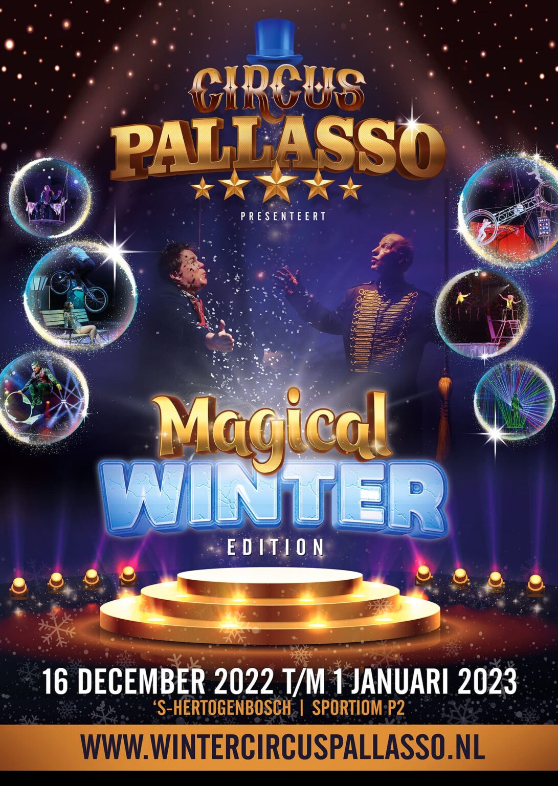Wintercircus Pallasso het allerleukste en sfeervolste kerst en winter event van het jaar strijkt vanaf 16 december  t/m 1 januari  neer voor een serie bruisende theatervoorstellingen vol beleving op P2 bij het Sportiom exclusief in ’s-Hertogenbosch: The Magical Winter Edition!