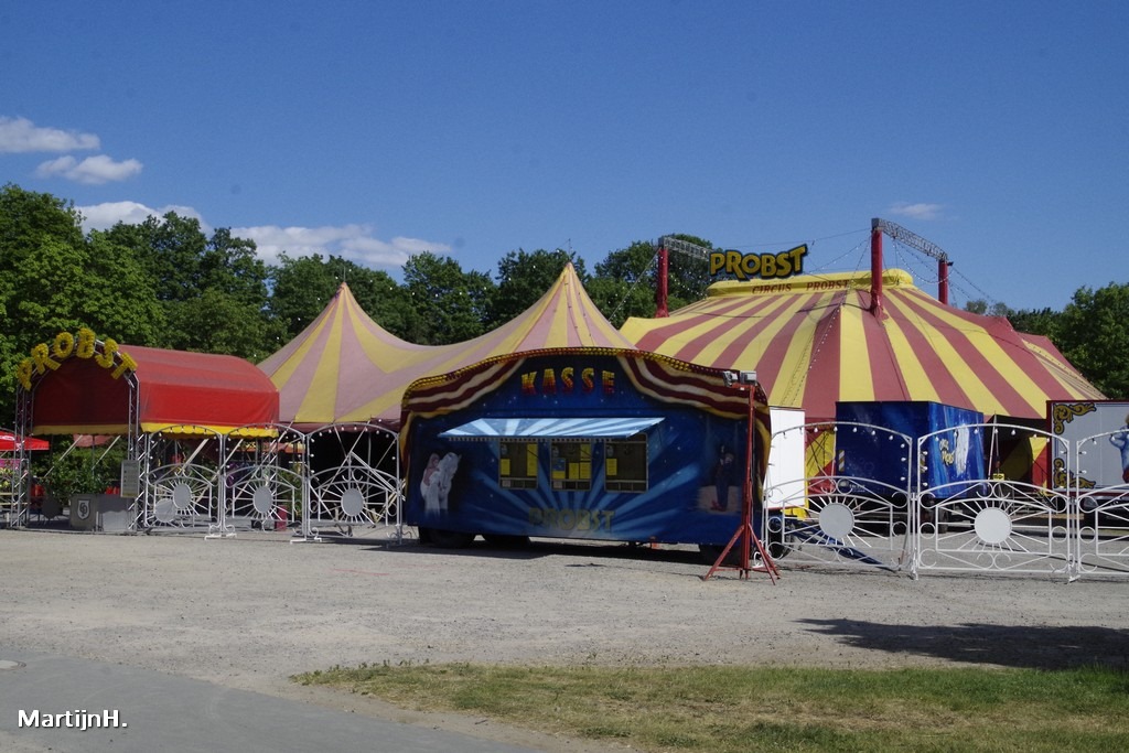 Duitsland, Nienhausen – Het circus Probst had vandaag om 15.00 uur première van het seizoen 2020. Onder de titel “Kultursommer im Revier” laten ze de hele zomer een gezinsvriendelijke circusshows zien in Revierpark Nienhausen. De voorstellingen vinden plaats op vrijdag tot en met zondag en op feestdagen om 15.00 uur.