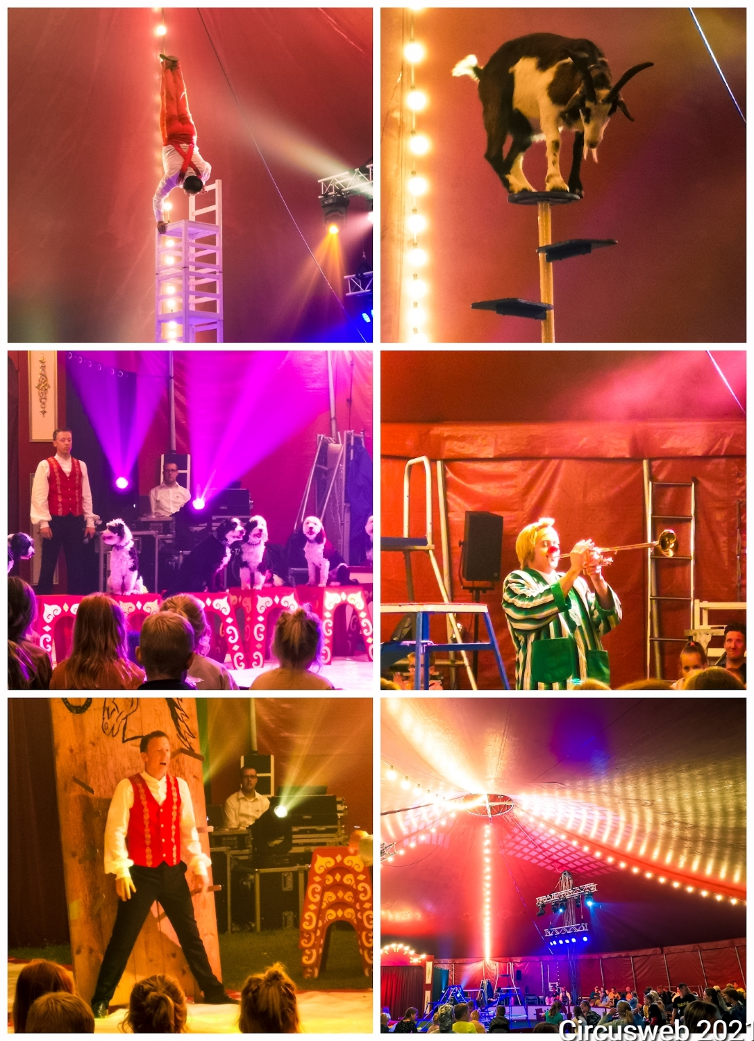 De voorstelling wordt muzikaal geopend door de Rivelino clowns, vader en zoon in klassieke clowns outfit spelen een vrolijke meeklapper. Daarna is het de beurt aan een geitennummer, vorig jaar nog te zien bij het vermaarde circus Arlette Gruss in Frankrijk en nu hier in de piste van Harlekino. Het is een groot nummer met veel geiten, een hond, Josefine en Daniël Igen en de rekwisieten, de piste is echt helemaal gevuld. De dieren hebben een groot repertoire aan tricks.