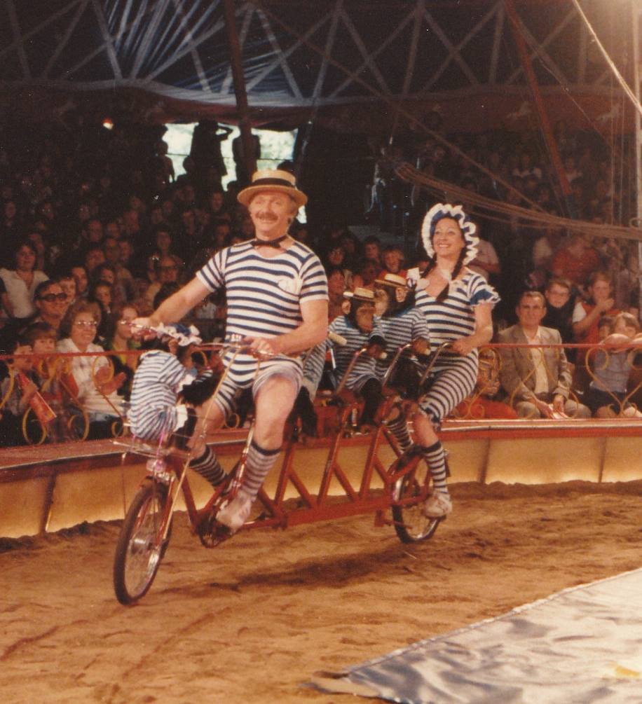 Naarmate de jaren verstreken en hun lichamen ouder werden, schakelden ze over naar chimpanseedressuur. Een originele en unieke act in zijn soort. De chimpansees, ofwel ‘chimps’ (ze mochten geen ‘apen’ genoemd worden, anders kreeg je ruzie), vertoonden verbazingwekkende kunsten. Zoals: fietsen op een tandem en het uitvoeren van leuke en verantwoorde trucs. Ze schitterden zelfs op het prestigieuze Circusfestival in Monaco en kregen contracten bij gerenommeerde circussen, waaronder Circus Barum.