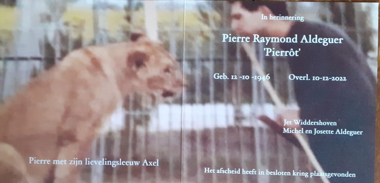 Vandaag bereikte ons het bericht dat Pierre Raymond Aldeguer “PIERROT” onlangs is overleden en in besloten kring is gecremeerd.