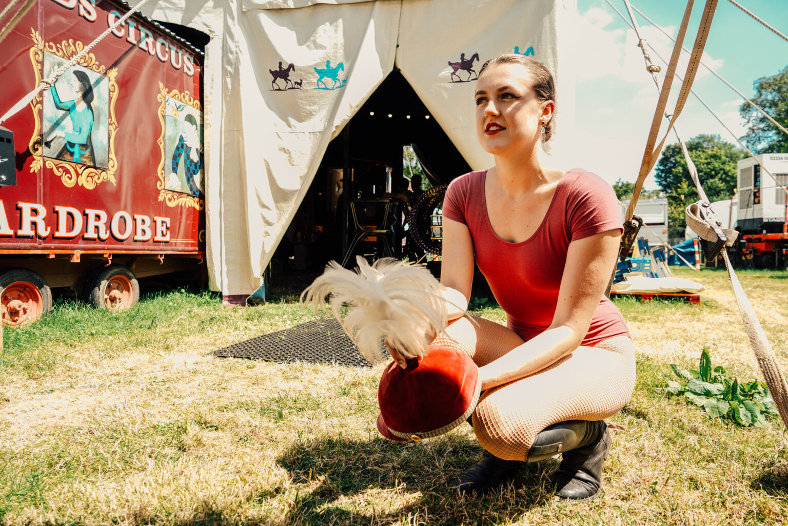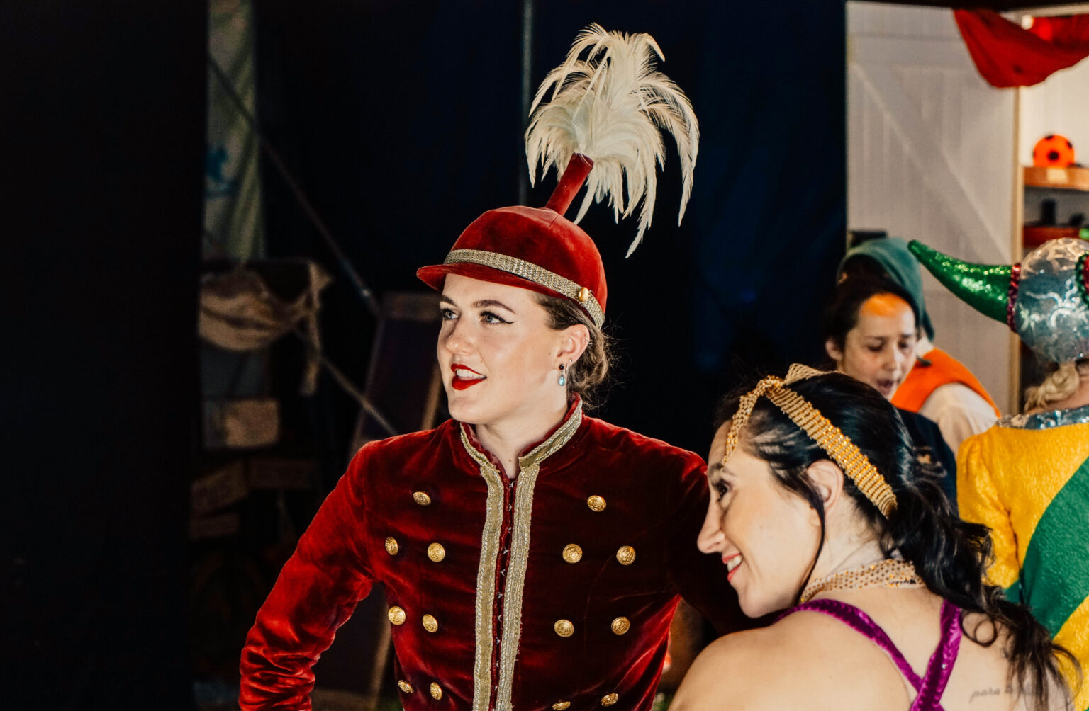 Dolores Tallulah draagt tijdens haar werk de visuele identiteit van Giffords Circus uit. (Weetje tussendoor: de jasjes zijn gemaakt van gordijnstof van de ouders van Giffords oprichters Toti en Nell Giffords.)