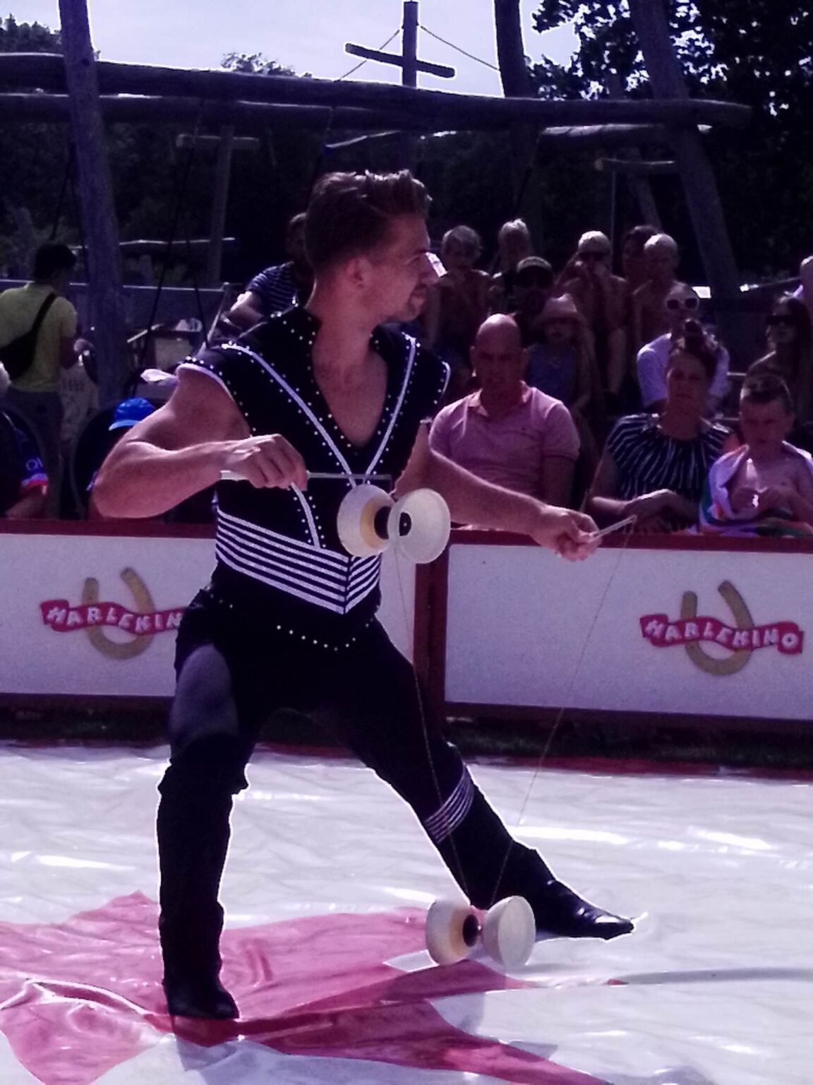 Heel leuk, tot mijn grote vreugde ontdek ik dat Robert Hake uit Emmen achter de schermen meehelpt met deze show. Robert is echt de grootste circusfan die ik ken uit onze woonplaats Emmen en een verwoed verzamelaar van alles wat met circus te maken heeft, hij zou zo een museum kunnen beginnen. Hier bij Harlekino werkt hij ook keihard met op- en afbouw van het circusmateriaal.