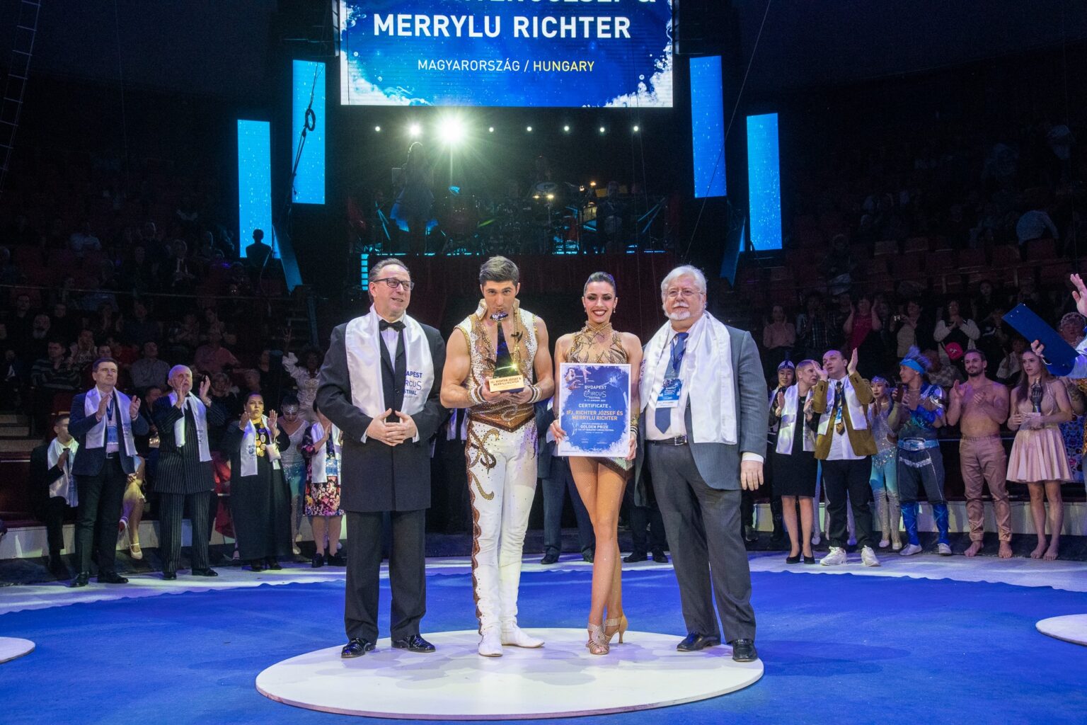 Hongarije – József Richter & Merrylu Casselly uit Hongarije wonnen met hun “Pas de deux” Ballet te paard, de eerste plaats op het 13e internationale circusfestival van Boedapest.