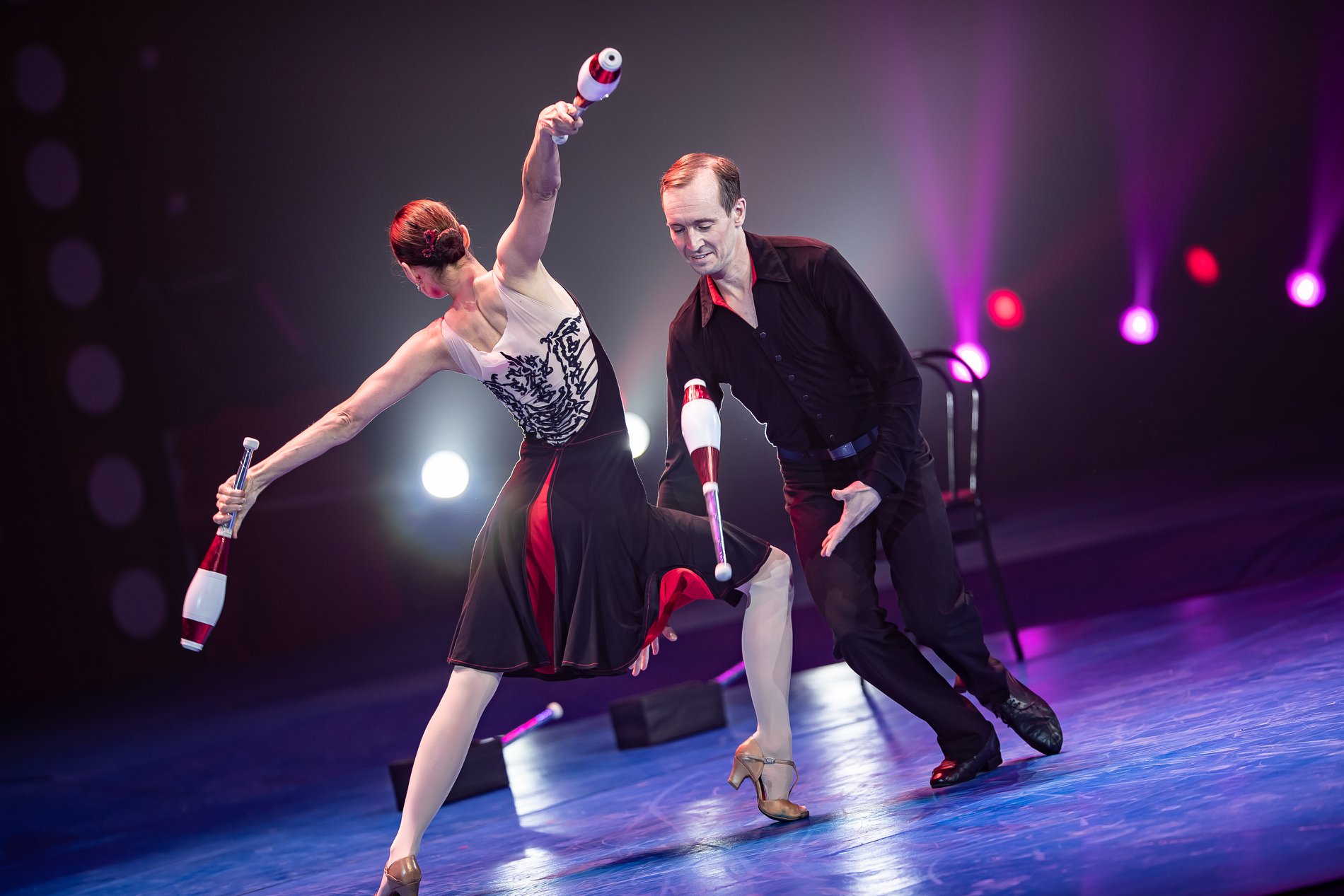 Publiek over de hele wereld is gebiologeerd door deze act waarin de dans en het jongleren op een heel hoog niveau wordt gecombineerd