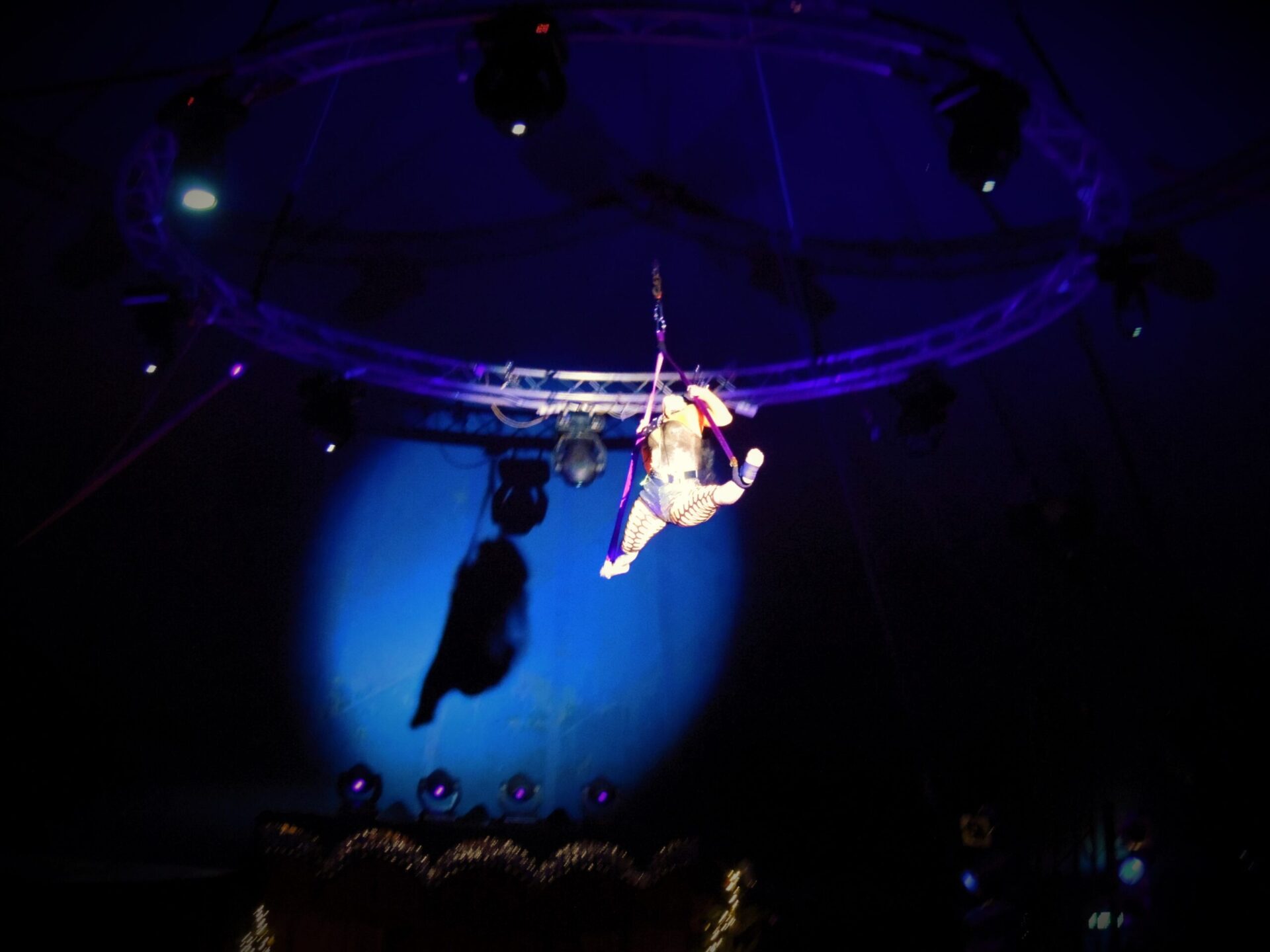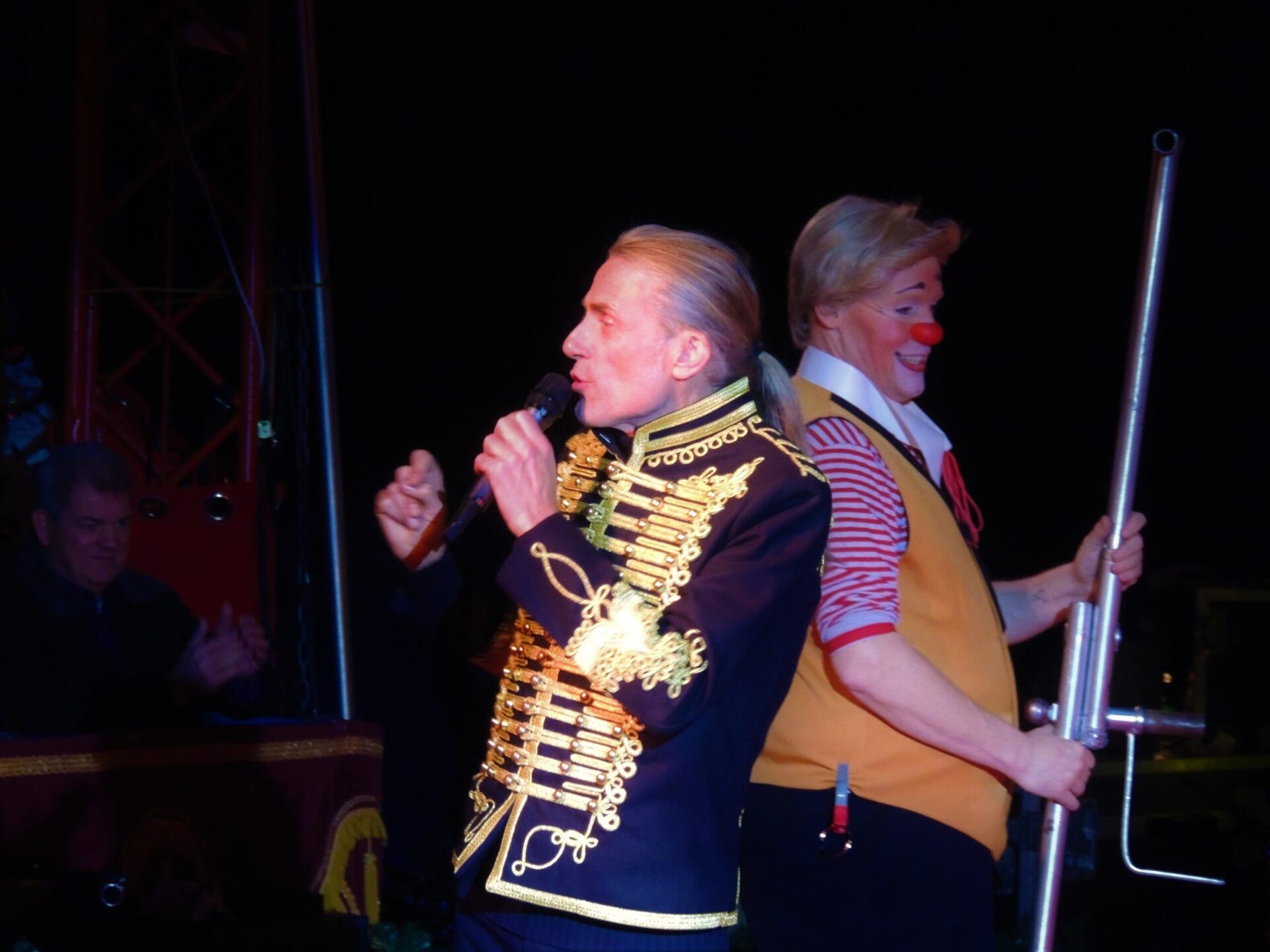 Zangers Patricia van Lierop verwelkomt, met haar prachtige stem, de bezoekers terug in het tweede deel van het Leidse circusprogramma. En dan wordt het even donker en mistig… Dat is nodig voor de fantastische laser lichtshow gebracht door de Franse Aegon Laser. Bijgestaan door moderne en prachtige lichttechnieken brengt hij het publiek een mooie lichtshow en daar kunnen ze in Leiden trots op zijn. Opgevolgd door een muzikale invulling op de saxofoon door Clown Jofri, die ook nog diverse muziekinstrumenten voortreffelijk lijkt te kunnen bespelen, zoals de saxofoon, een toeterix en ook uit koeiebellen weet hij zelfs muziek te krijgen. Een multi talent, als je het mij vraagt. Betoverend zijn de razendsnelle omkleedmomenten van de prachtige Tjechische Adriana Bessogonov. Terwijl het publiek er bovenop zit, weet zij zich bijna onzichtbaar in enkele seconden van het ene prachtige kostuum in het andere te hullen… Het publiek zit nog vrolijk na te kwaken, na dat Jofri Libello ze heeft aangespoord dat te doen… Het is de overgang naar de trampoline act van het duo Waldek en Pavel. Deze keer voeren zij hun stunts en sprongen uit op de trampoline en vliegen hoog door de circustent… Ook zij waren ooit atleten, maar maakt de stap naar het circusleven, tot groot vermaak van het publiek. Adela Pazeran Hernandez moet wel een enorm sterke shampoo hebben, want je haar en hoofdhuid moet ongelooflijk sterk zijn, wil je met je haar in een trapeze kunnen blijven hangen… En dat kan ze! Onbeschrijflijk, maar toch mogelijk! De spreekstalmeester wordt ook tot een hair hang act aangezet door Clown Jofri, maar hij ziet dat helemaal niet zitten… Blijkbaar is Jan Willem zijn wilde haren al verloren… Net als Jofri trouwens, zo blijkt tijdens de voorstelling. Dan komt Konstantin Beck binnen gereden op een heuse Trike, een driewielige motor. Het biedt podium voor zijn rolarola act. Hij blijkt een meester in balanceren te zijn. Dan volgt de Grande Finale met alle meewerkende artiesten, maar ook de jongste circuskinderen nemen er deel aan… Met Jofri, die samen met hen de show afsluit door sneeuw te maken… Toch nog een witte afsluiting! En zoals ook bij de andere circussen inmiddels bijna een traditie is, zo kan men na afloop ook hier door een erehaag van artiesten naar de uitgang van het circus lopen…