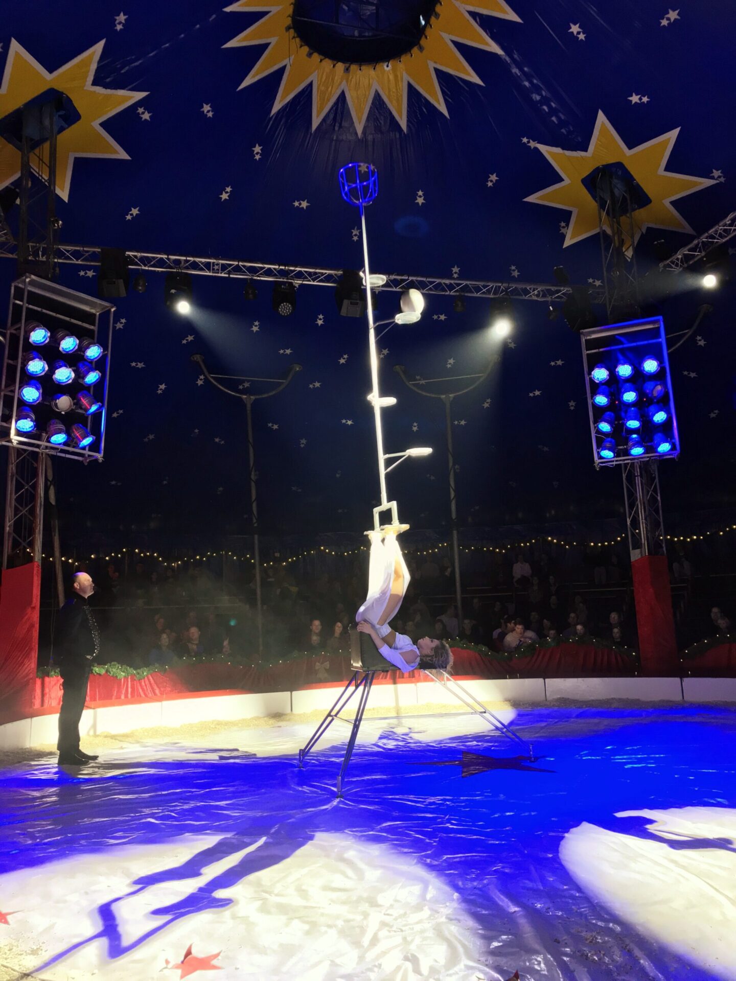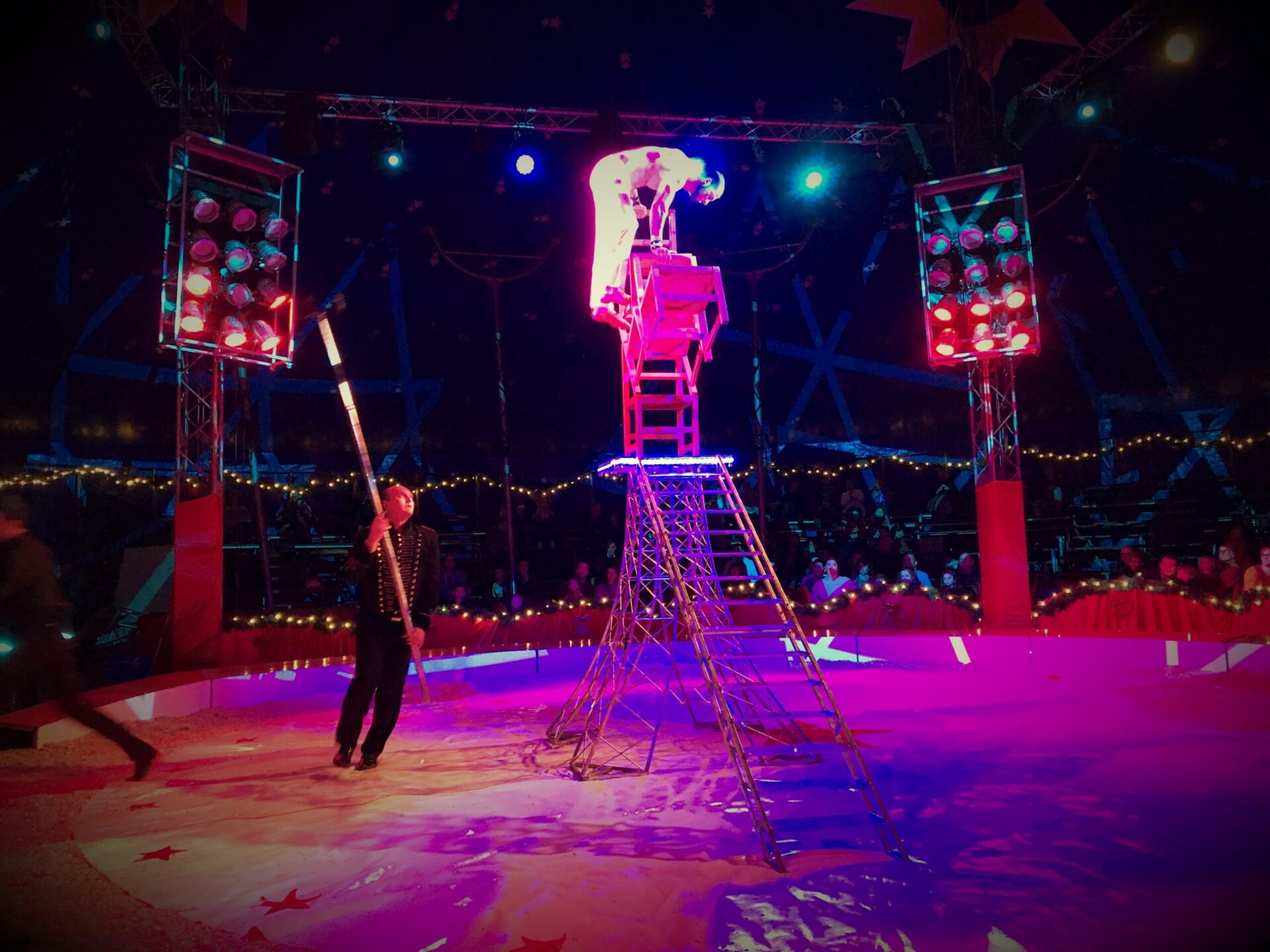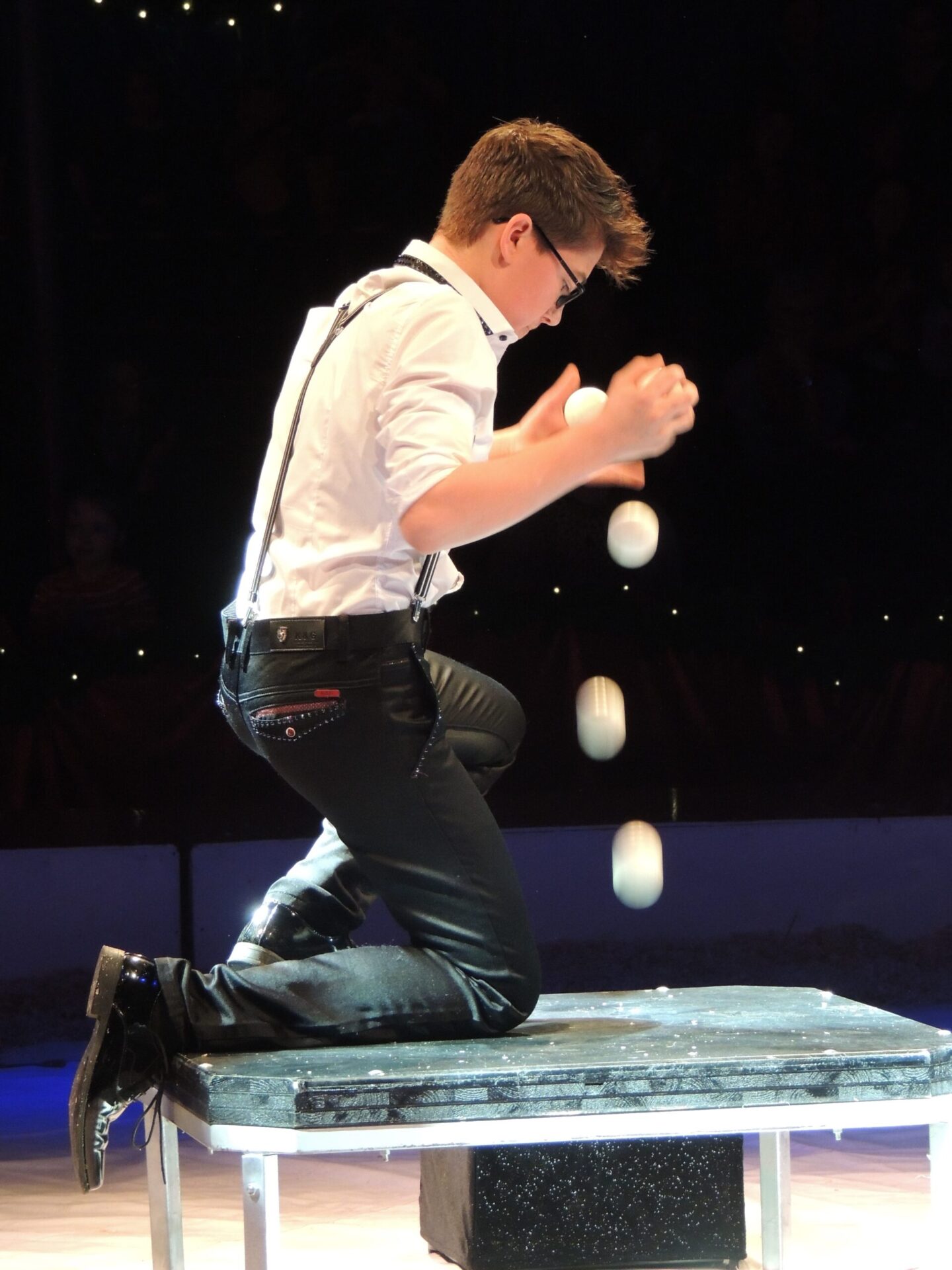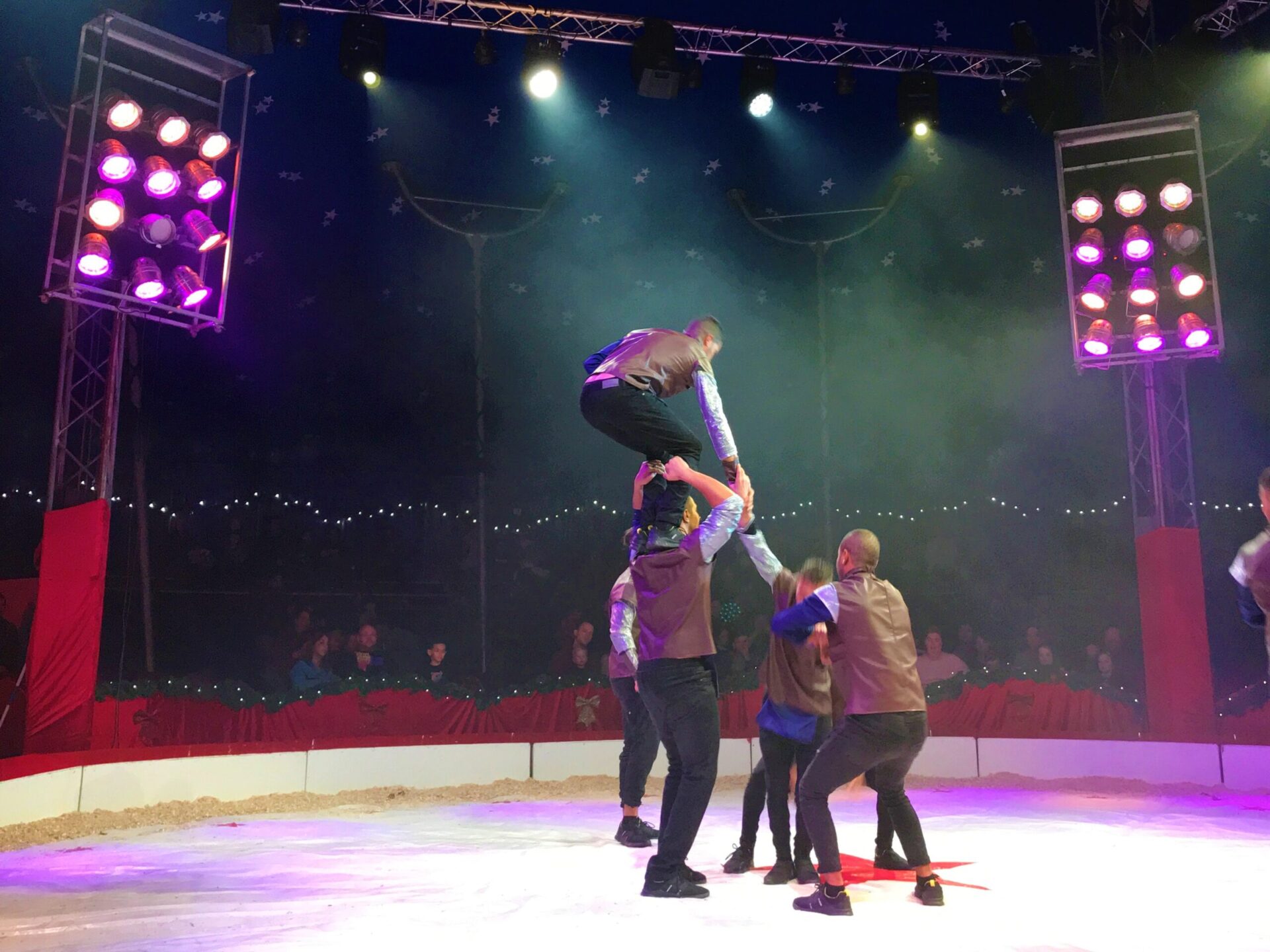 Devid Adem bijt de spits af, hij is al een beetje bekend in het circus en was afgelopen zomer al hoog in de piste van het circus te zien. Irena Lagroni laat haar antipode kunsten zien en later ook hoe zeer zij de kunsten van het balanceren verstaat. Zij geeft een mooie uiting aan het begrip ‘omhoog werken’… Maar u weet, een circusvoorstelling laat zich niet in woorden uitdrukken, u kunt beter zelf gaan kijken. Dat geldt ook voor de geur van zaagsel, kamelen en lama’s, ook die ervaring is onbeschrijflijk. De spierballen van deze mannen, maakten meer indruk op mij dan hun artiestennaam, maar met een menselijke piramide kunnen de mannen rekenen op een enorm applaus van het aanwezige publiek. Het clownsduo ‘Non Stop’ doet iets wat eigenlijk niet mag: ze treden op met een heuse ijsbeer! Misschien verboden, maar niet minder vermakelijk. Kom en oordeel zelf!