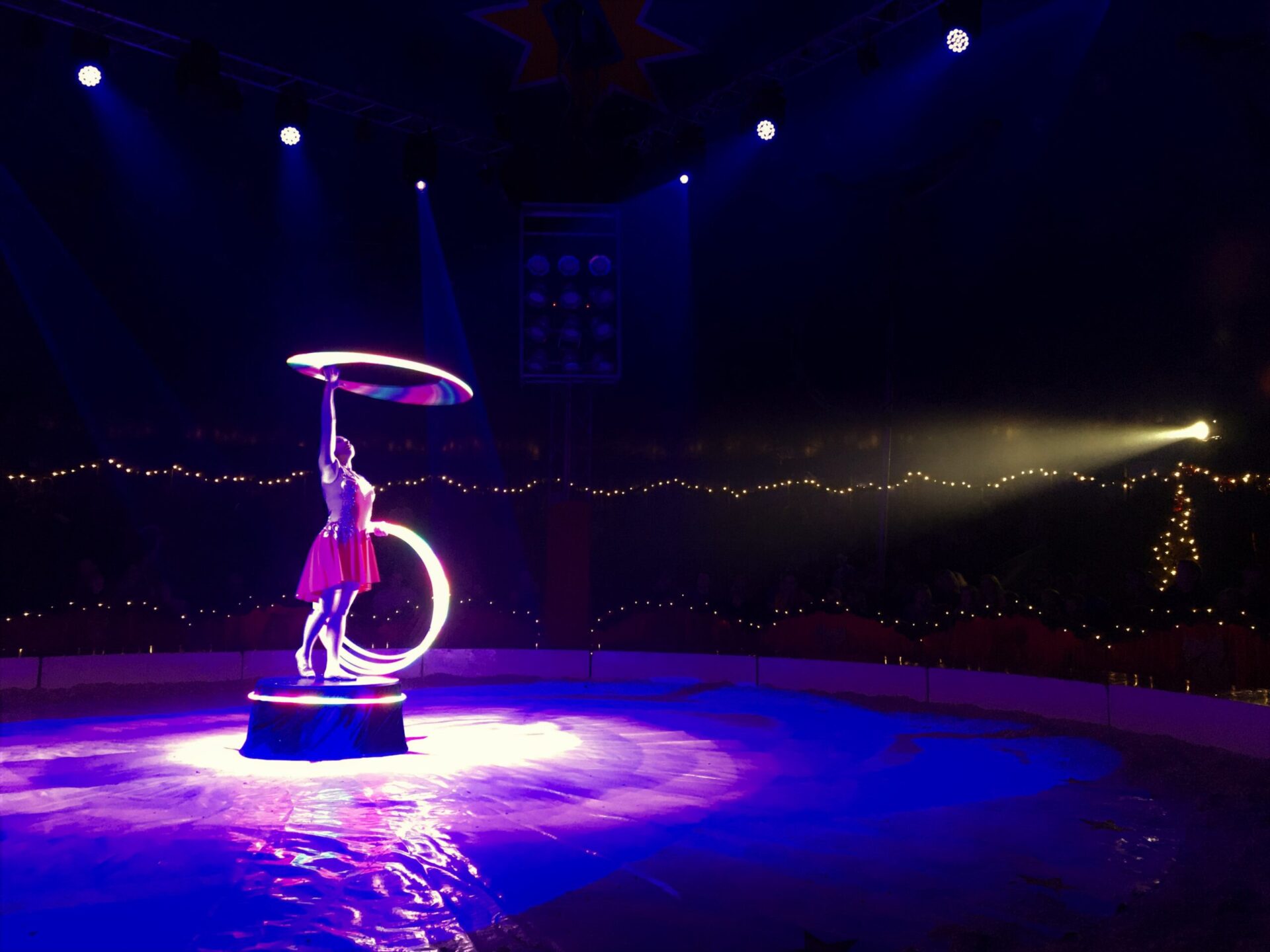 Het is door die verlichtte tunnel, waarmee je in de chapiteaux komt en je naar je zitplaatsen wordt gebracht door de vriendelijke medewerkers van het Nijmeegse kerstcircus. Als een ieder zijn of haar zitplaats gevonden heeft, start de ruim 2 uur durende jubileumvoorstelling. De presentatie van het programma is in handen van Natascha Freiwald en zij introduceert de artiesten die in het circusprogramma hun talenten laten zien…