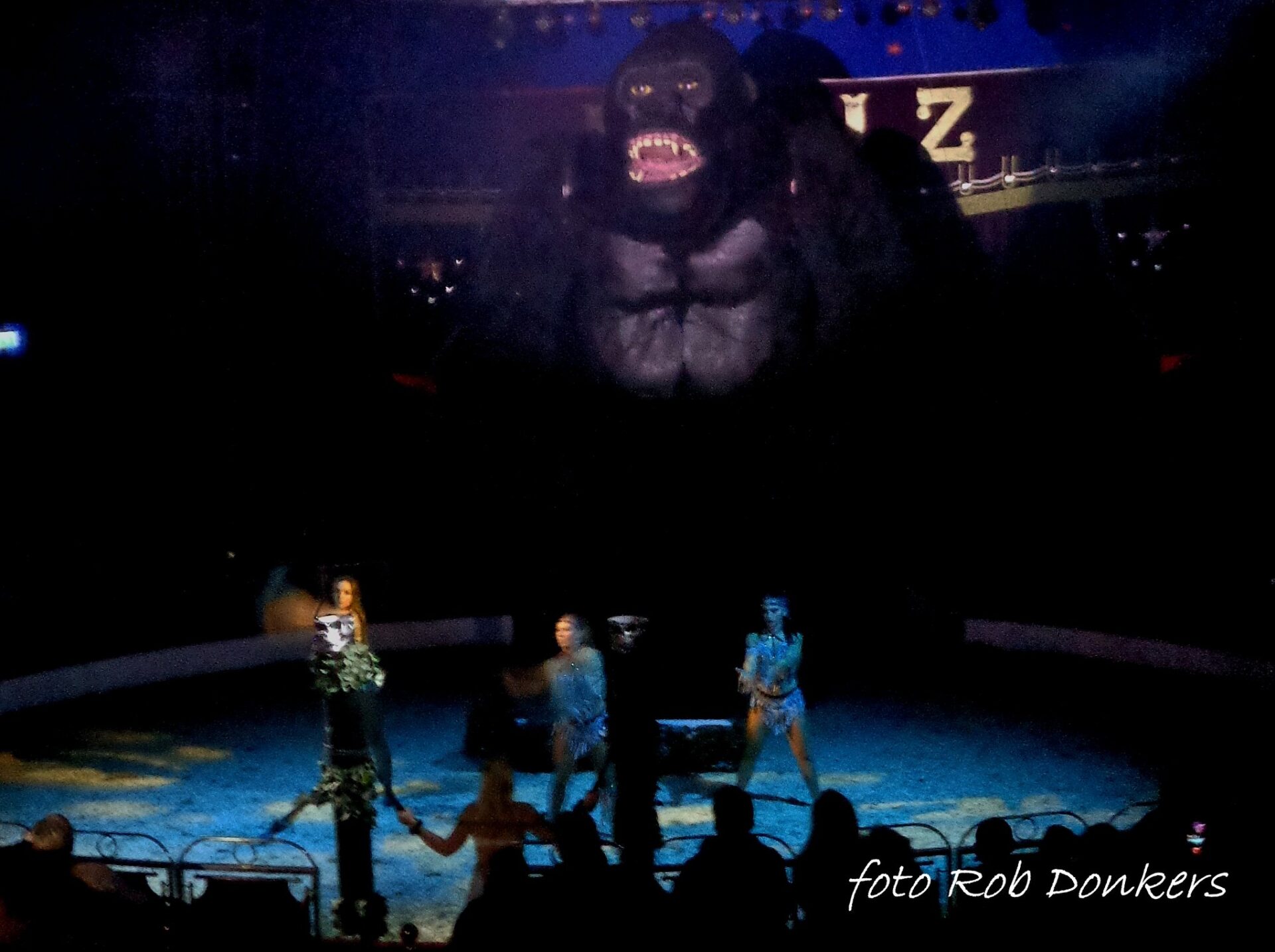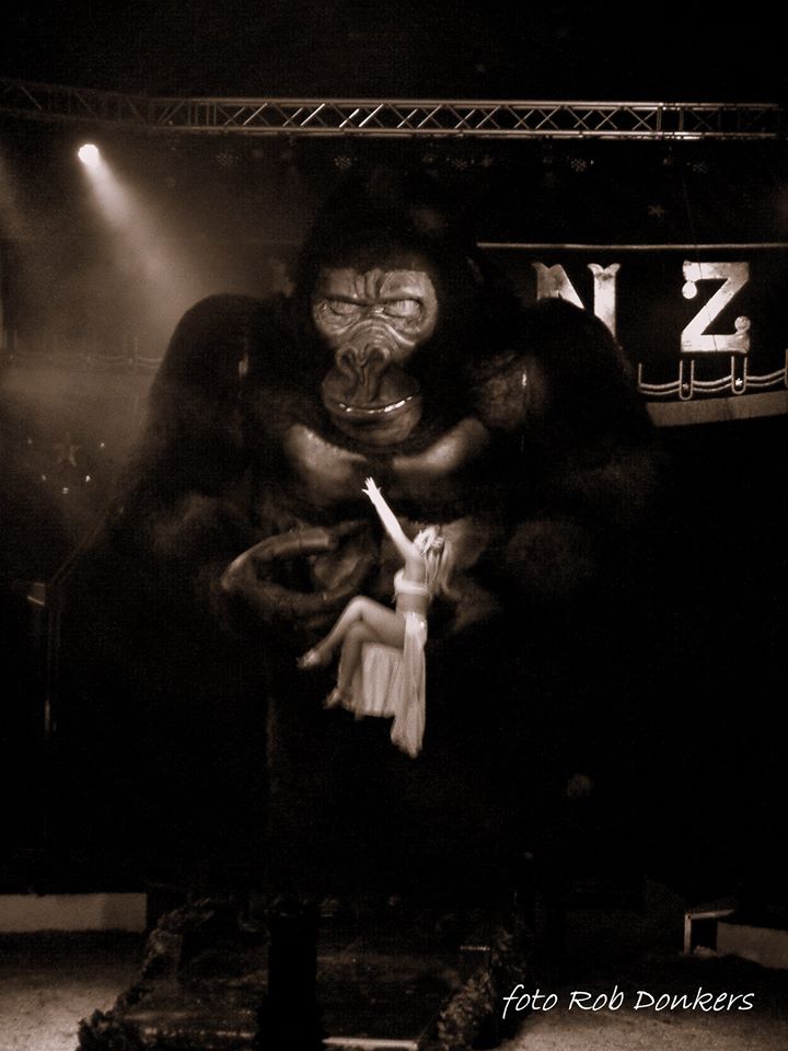 Maar het optreden van “King Kong”sloeg helemaal in als een bom. Ik geef toe dat ik er zelf ook met verbazing naar heb zitten kijken. Knap in elkaar gezet dat showtje met de reusachtige aap.