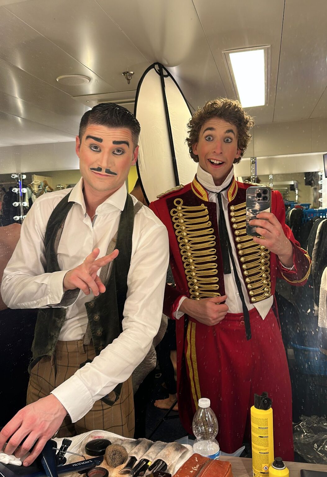 Kevin vertelt aan Circusweb: “het schip vaart over de hele wereld. Ik en nog een aantal fantastische artiesten reisden één reis – langs Nieuw-Zeeland en Australië – mee. We vlogen naar Auckland (Nieuw-Zeeland, red.) en daar begon onze reis. Aan ons de taak om een klassieke en een moderne show te spelen voor de gasten die de wereldreis van hun leven aan het maakten”.