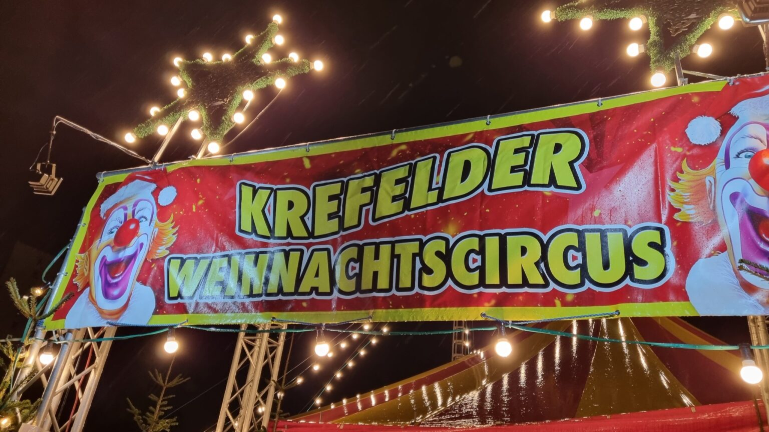 Duitsland, Krefeld – Na mijn bezoek aan het Düsseldorfer Weihnachtscircus besloot ik op de terugweg toch ook maar bij het Krefelder Weihnachtscircus te gaan kijken. Eigenlijk zonder hoge verwachtingen kwam ik aan op de Sprodentahlplatz in Krefeld en daar werden mijn verwachtingen al gelijk overtroffen. Maar liefst drie grote geel rode circustenten met daarop echt honderden lampjes maakten gelijk indruk. Maar een mooi tentencomplex zegt natuurlijk nog niks over de inhoud van de voorstelling, maar ook die overtrof mijn verwachtingen. Dit was echt groot en goed circus, wat ik lang niet in deze vorm heb gezien.