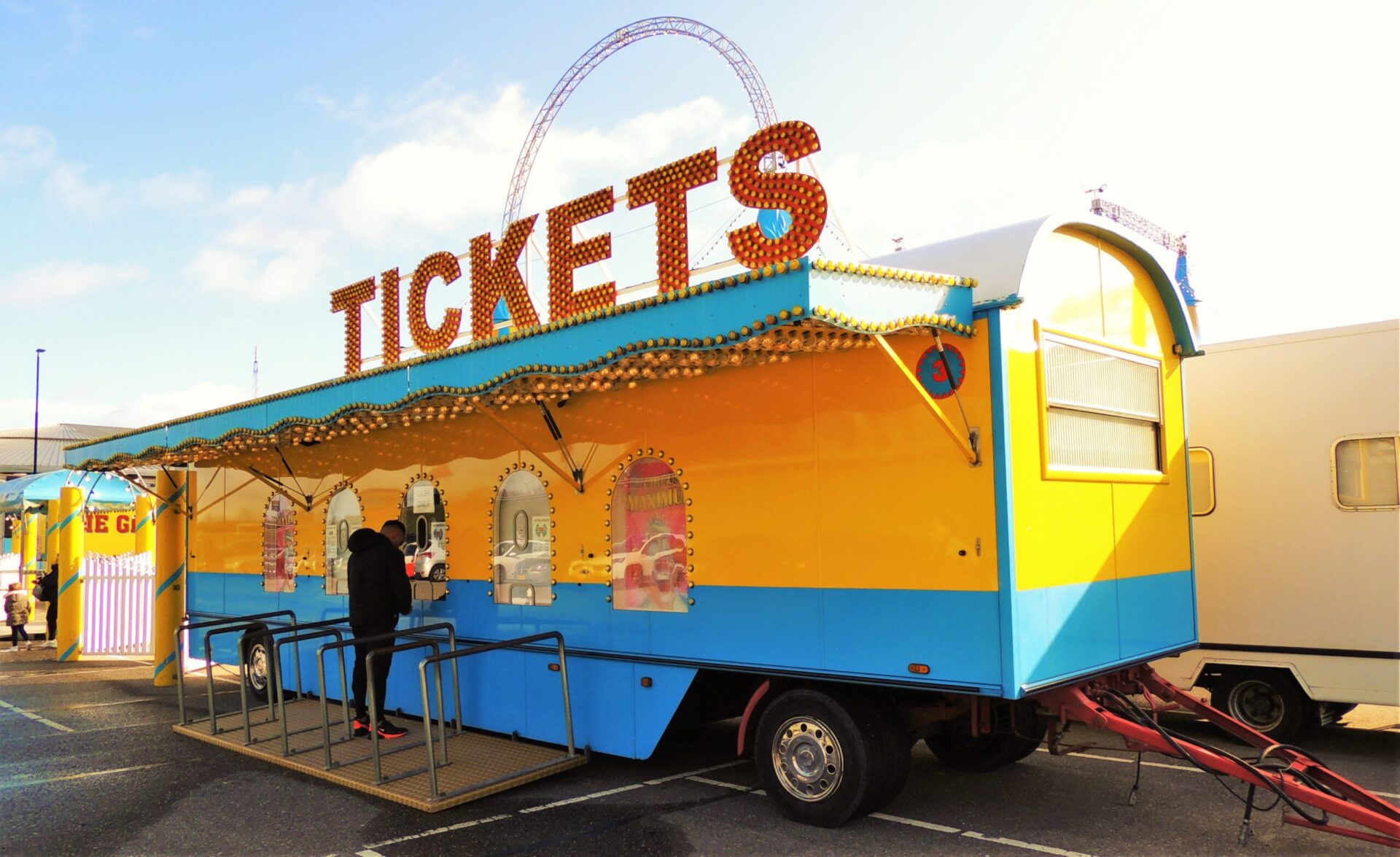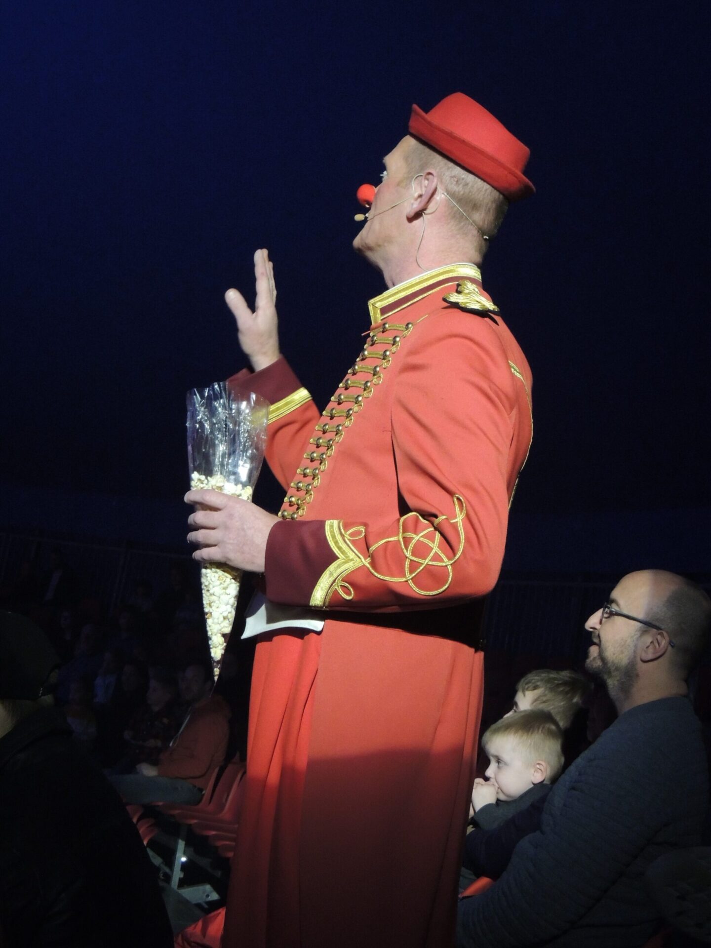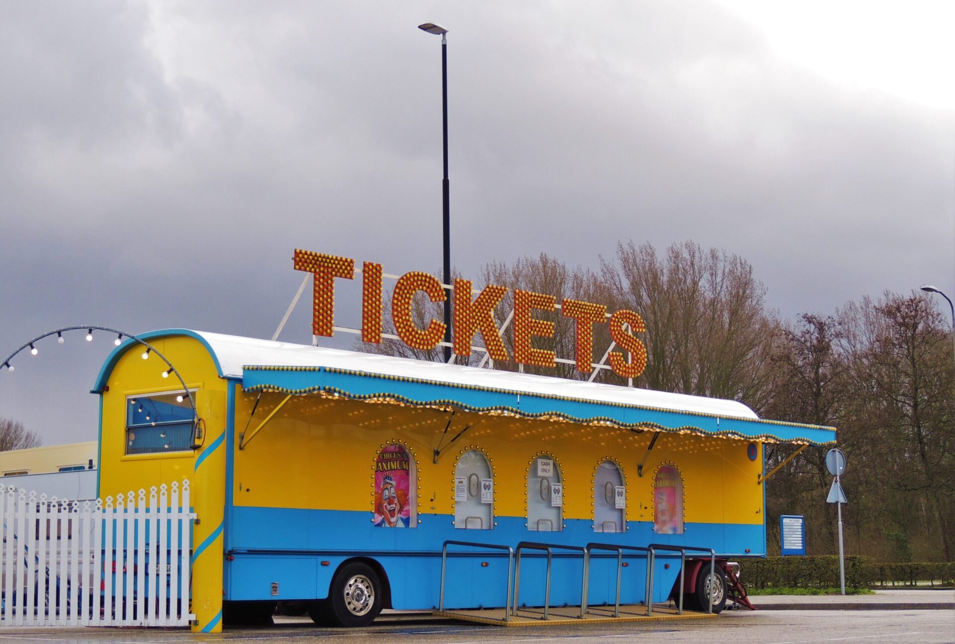 Zo druk werd het niet… De bezoekers komen binnen, veel kinderen zijn er wel. Voldoende parkeergelegenheid is er ook.  Aan de circuskassa kopen we onze kaarten: want wie geen kaartje heeft gaat – geholpen door de rekwisiteurs – aan kop en kont de tent uit… naar het schijnt?!