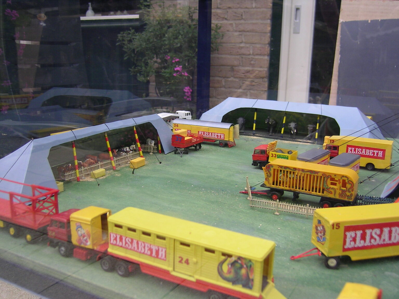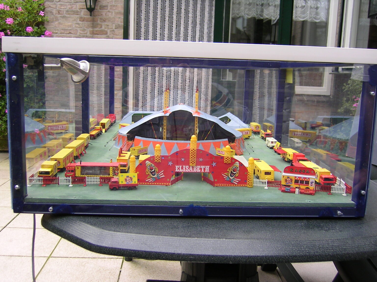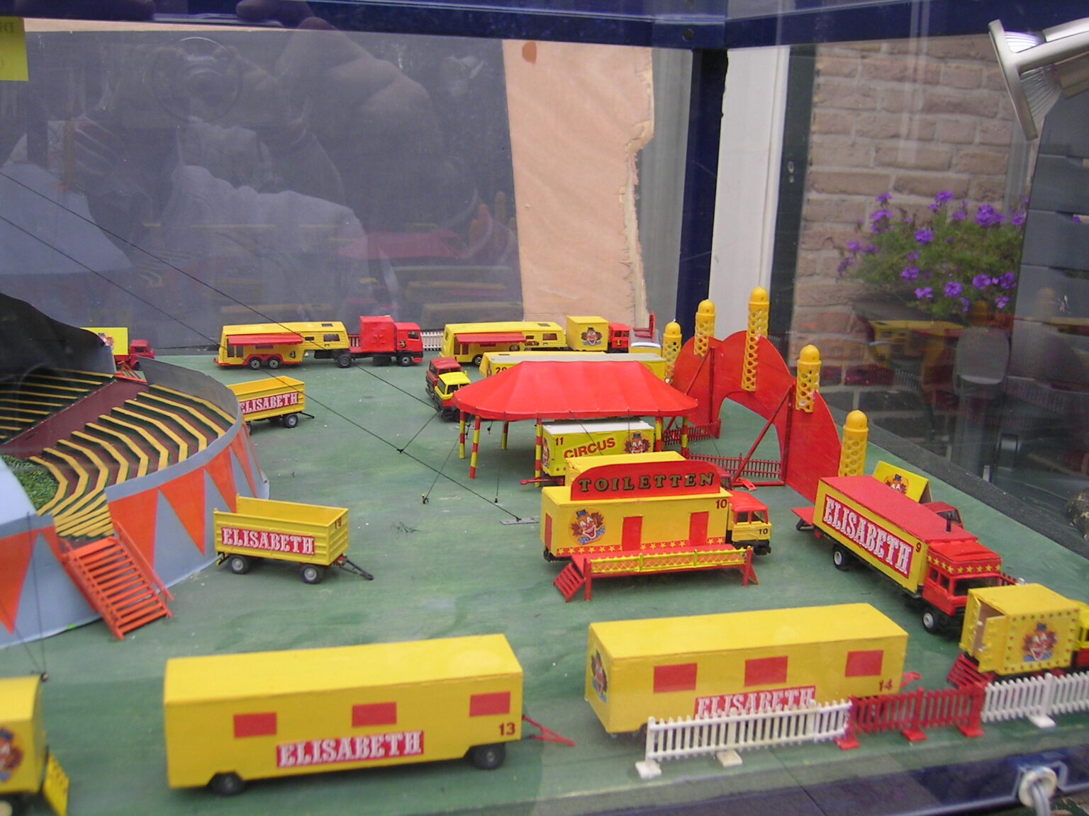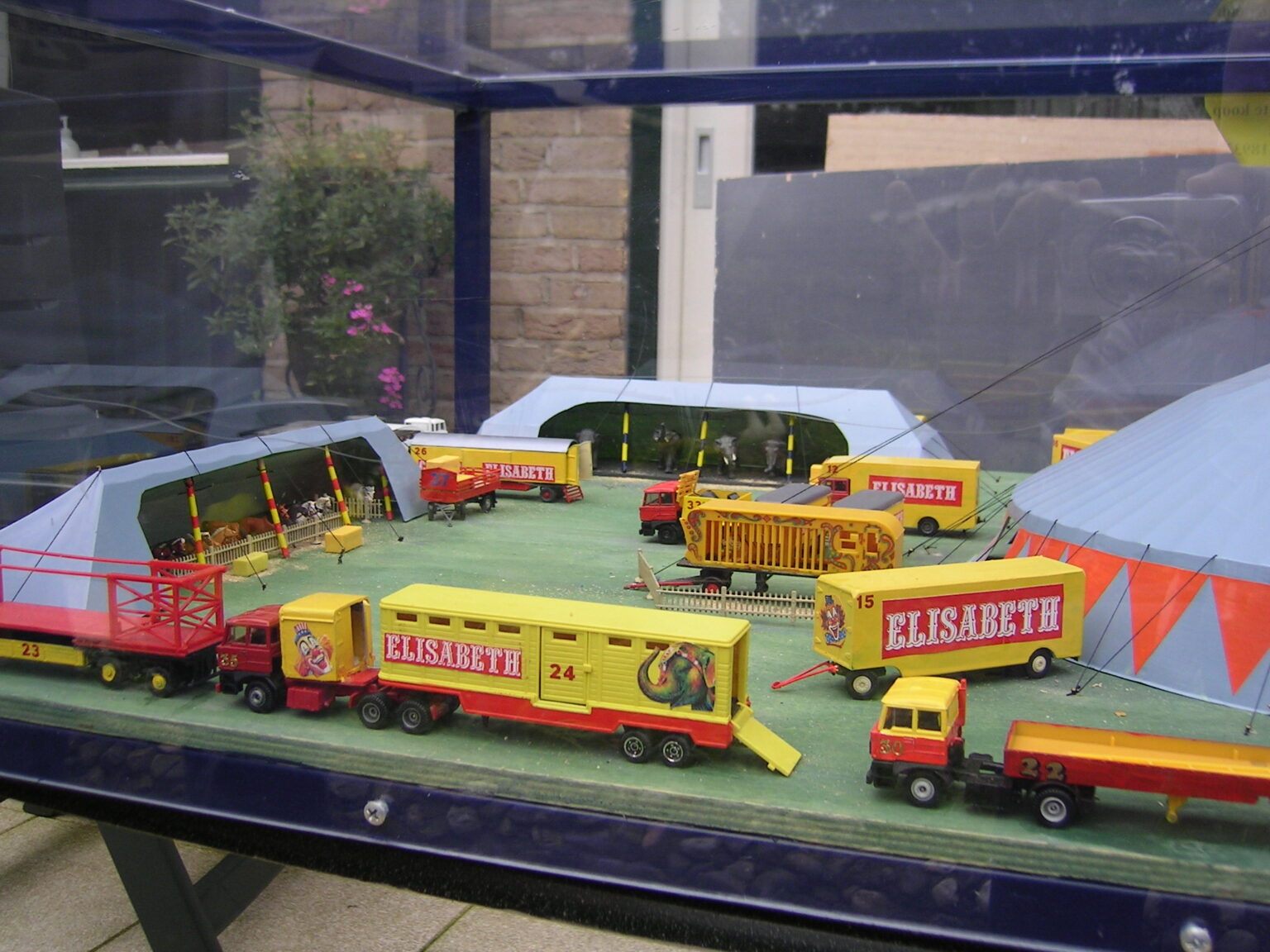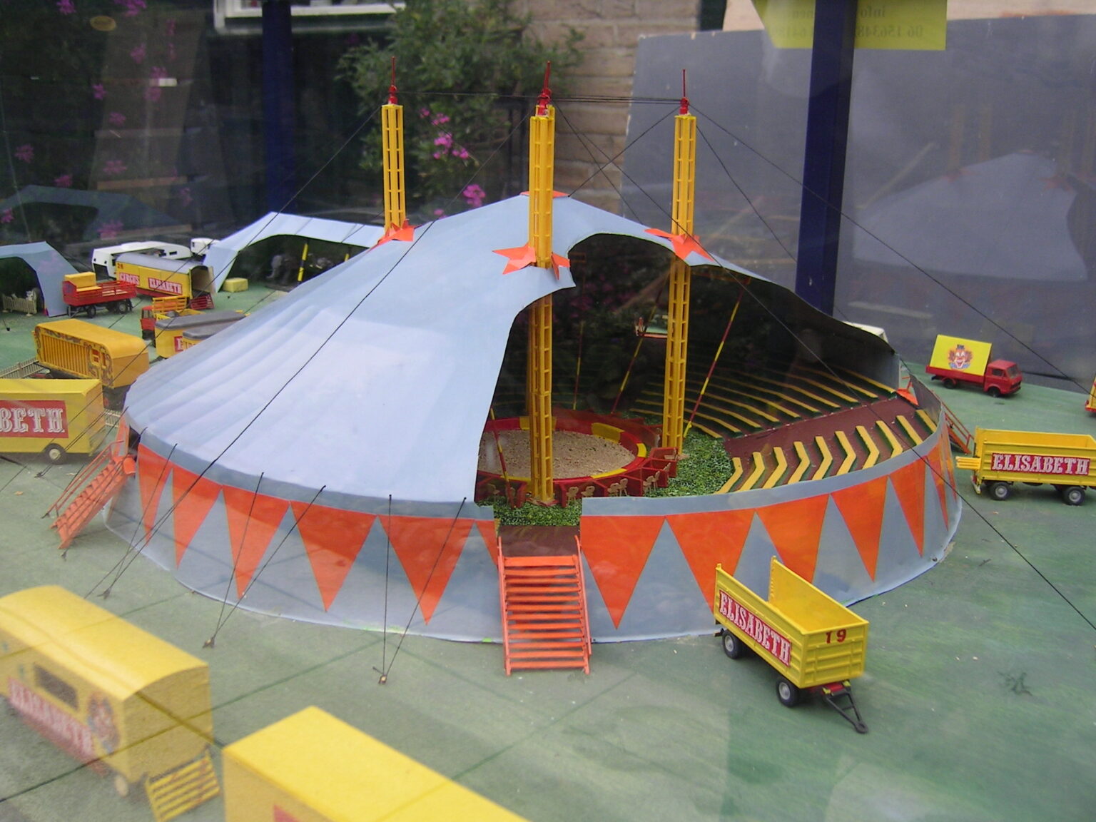 Dit miniatuurcircus, in de kleuren geel en rood, schaal 1:87 is een fantasie circus. Het transport bestaat hoofdzakelijk uit DAF’s. De opstelling van dit model is vlakbij de werkelijkheid.
