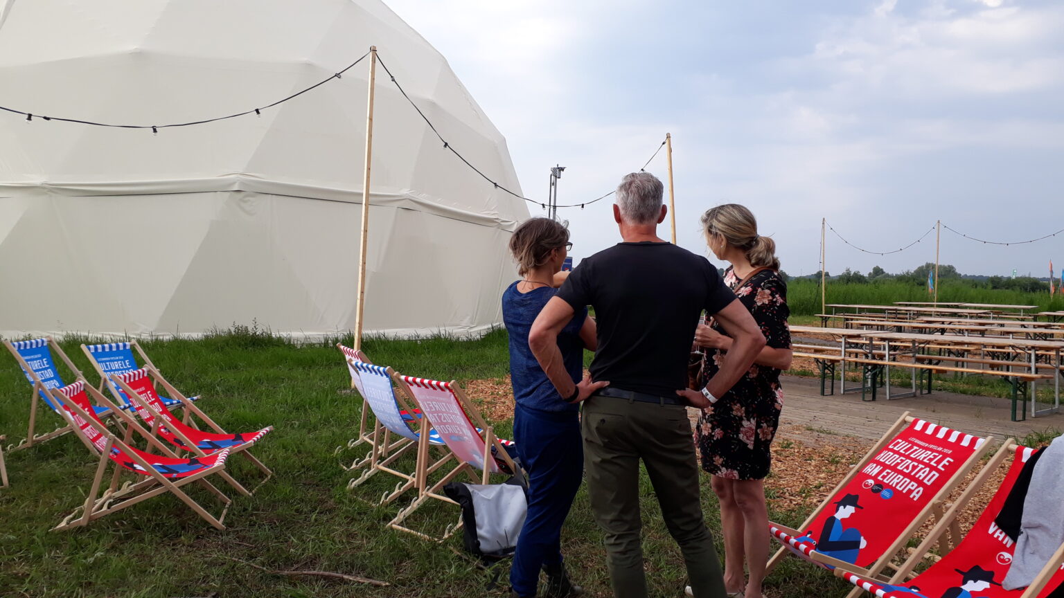 Lennie Visser vertelt het een en ander over de speciale tent aan de voorzitter van Boost Henk, en zijn vrouw,