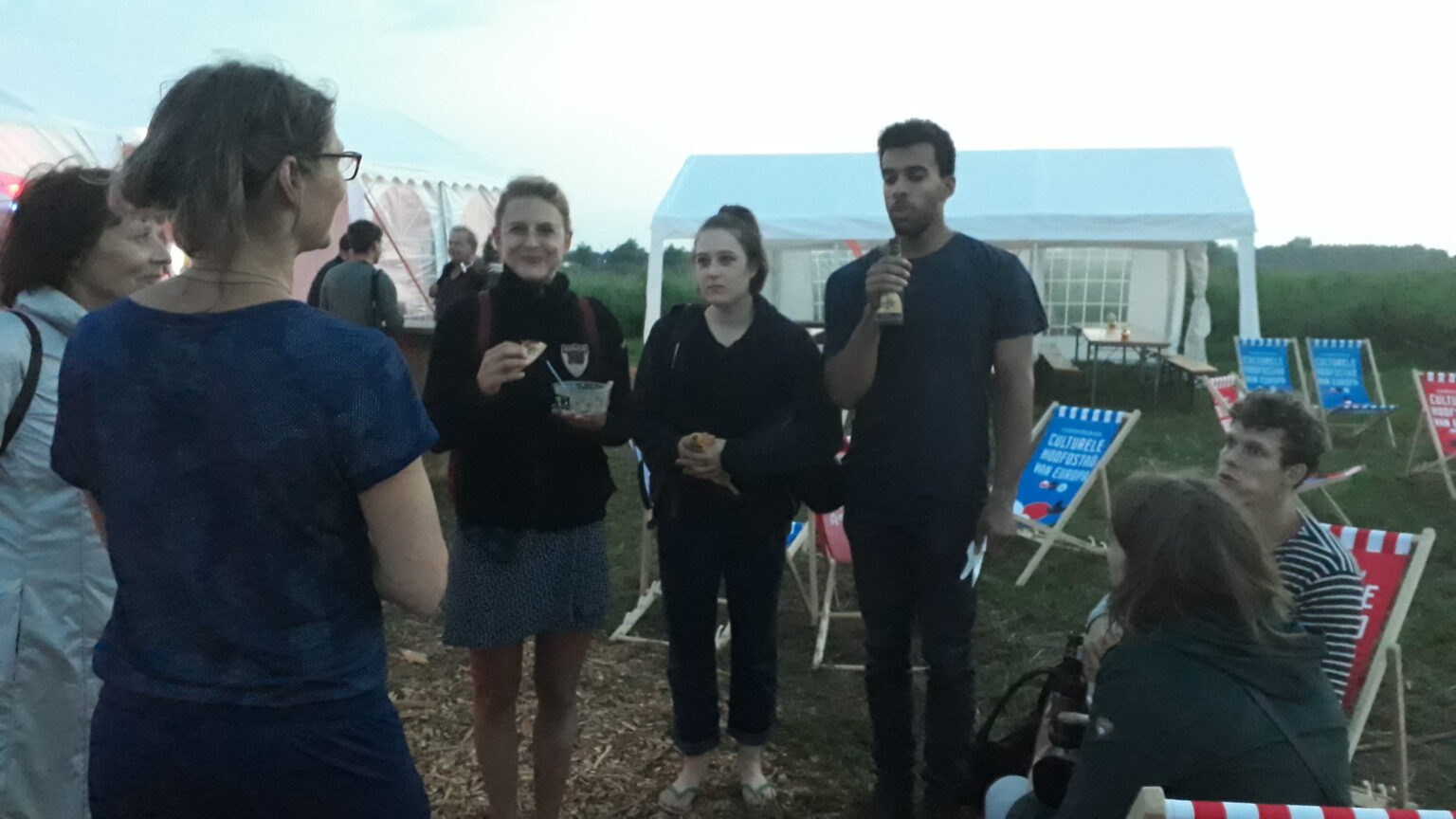 Net voor de voorstelling begint kom ik Arnold Balk tegen (o.a. vader van Sander Balk van Circus Salto). Een circusvriend die graag naar nostalgische circus voorstellingen gaat. Nu gaat hij verwachtingsvol naar een voorstelling van “het nieuwe circus”. Na afloop is hij zeer enthousiast over wat hij te zien heeft gekregen: “Normaal denk ik bij het nieuwe circus “het zal wel”, maar dit is echt razend knap, heel mooi. Zeer de moeite waard. Wat een prachtige voorstelling, echt een aanrader”. En zo spreek ik na afloop een aantal bezoekers, o.a. een echtpaar uit Monster (Westland) die hier in de omgeving een paar dagen logeert. Ook deze mensen zijn bijzonder te spreken over de voorstelling, zo apart! Dus de bezoekers komen niet alleen uit Leeuwarden of Drachten.