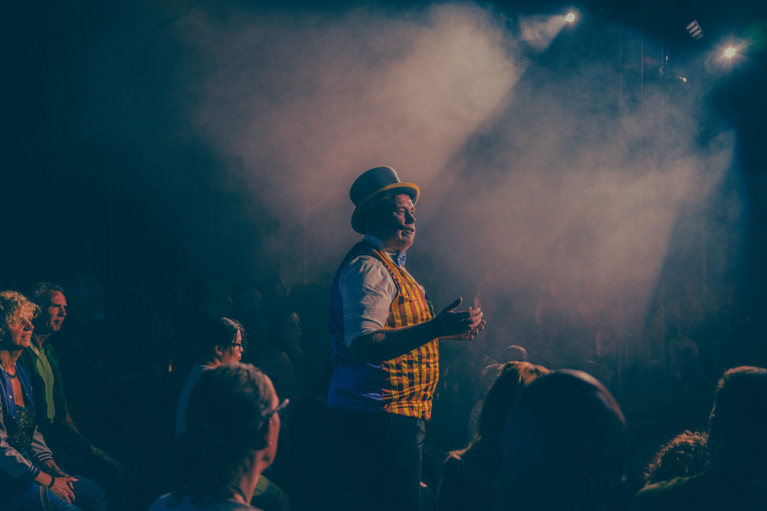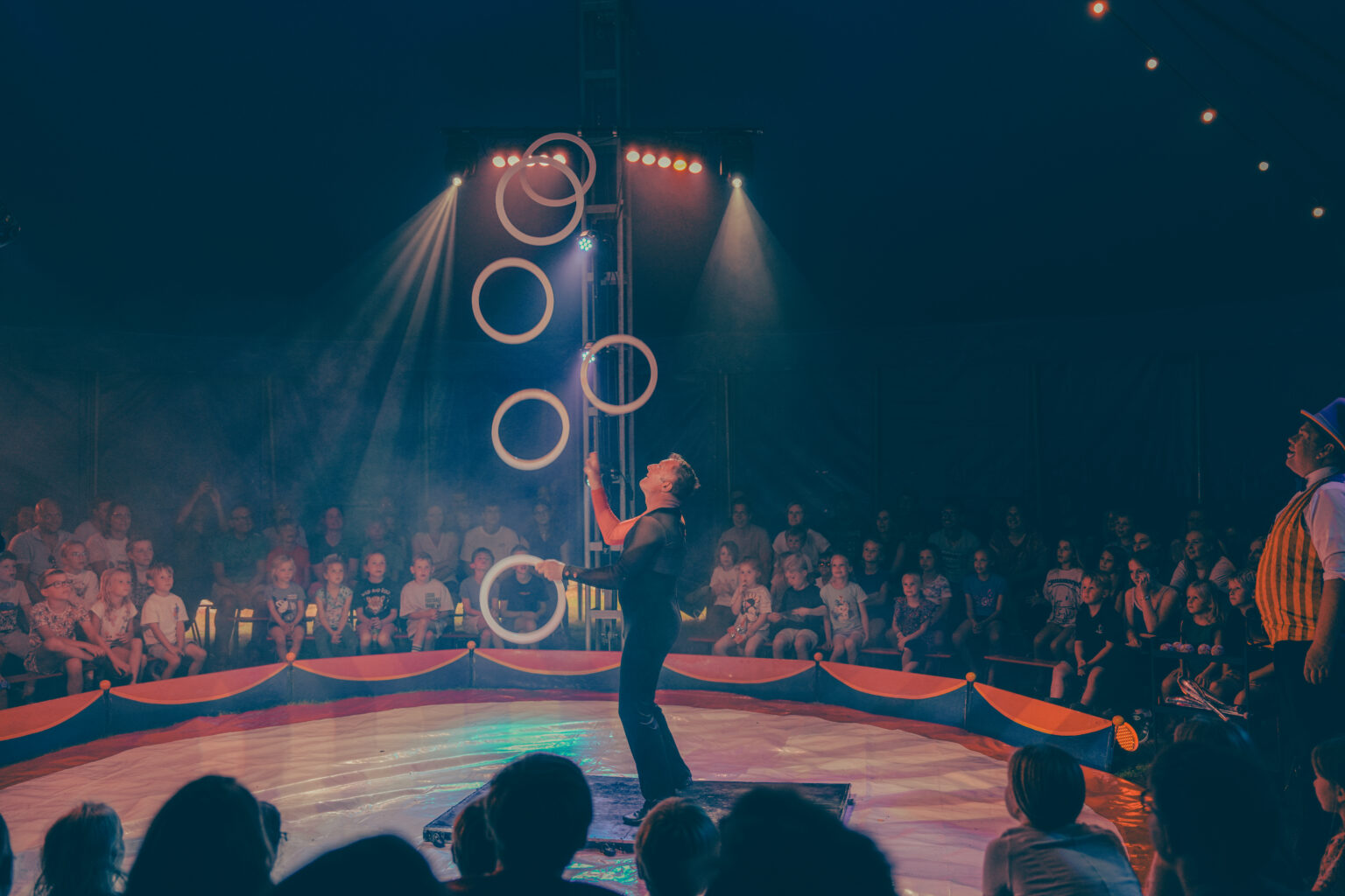 Circusdirecteur en clown Sander Balk heet het publiek in de kleurrijke nieuwe circustent warm welkom en zet daarmee de toon voor een show die niet alleen feestelijk, maar vooral oprecht en betrokken aanvoelt.