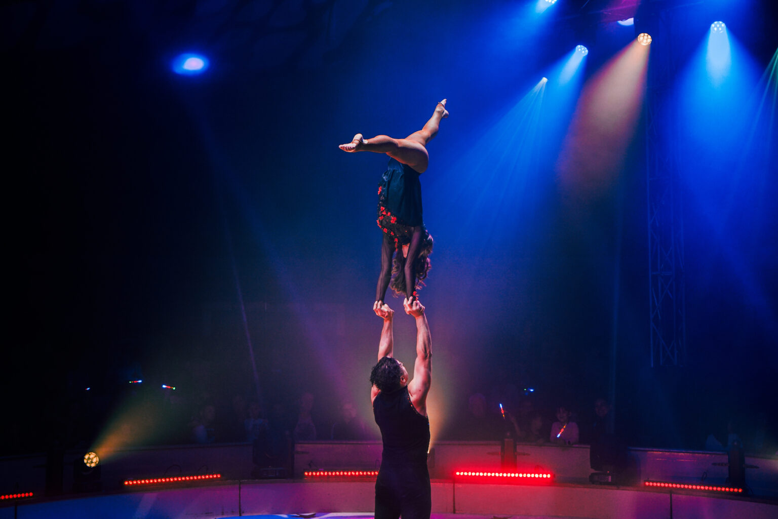 Op de vloer en in de piste is er veel ruimte voor acrobatiek van hoog niveau. Duo Doro is al jaren een vaste waarde in dit circus, en ook dit seizoen leveren Ge Shu Hong en Roberto Cappello met hun hand-to-hand-acrobatiek werk van wereldklasse. De muzikale omlijsting (met de Jeroen van der Boom-versie van ‘Mag ik dan bij jou) is ditmaal wat minder gelukkig gekozen, maar de artistieke kracht van de act blijft onverminderd overeind.
