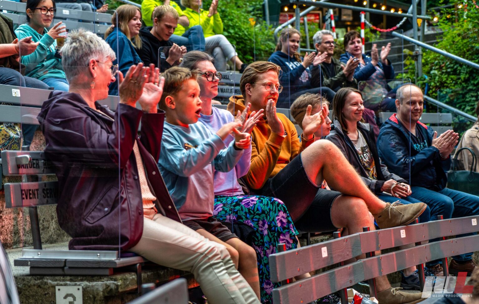 Al dik een uur voor de show begint stroomt het publiek toe. Van de ruim 1100 plaatsen mogen er slechts 250 bezet worden en dat maakt dat de voorstellingen snel vol zijn. De mevrouw naast mij vertelt trots dat ze weet dat Nigel veel van zijn attributen zelf gemaakt heeft. Het krantenartikel over hem wordt bijna letterlijk geciteerd. “Dit wordt een hele grote”, eindigt ze trots. Normaal gesproken begint een voorstelling zo’n 8 a 10 minuten later dan aangekondigd, maar vanwege de weersvoorspellingen, er kan een bui aankomen na 9 uur, wordt de aanvang 10 minuten vervroegd, dat kan gewoon. Niks geen probleem.