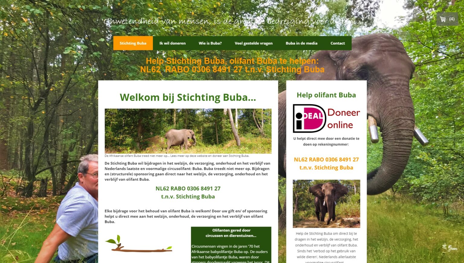 Helpt u ook de vrijwilligers van Stichting Buba direct bij te dragen in het welzijn, de verzorging, onderhoud en het verblijf olifant Buba? U kunt de website bezoeken via: Klik hier voor de website.